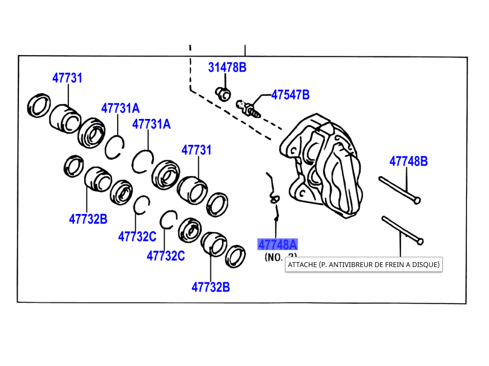 Pièce identifiée par la référence 47748A en surbrillance sur l'éclaté en photo