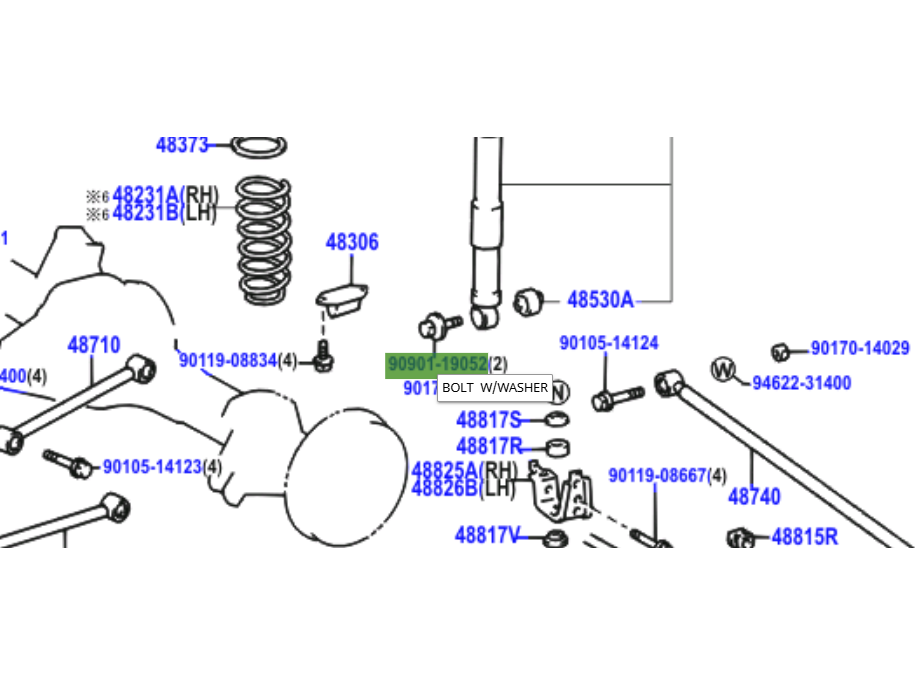 Pièce identifiée par la référence 90901-19052 en surbrillance sur l'éclaté en photo
