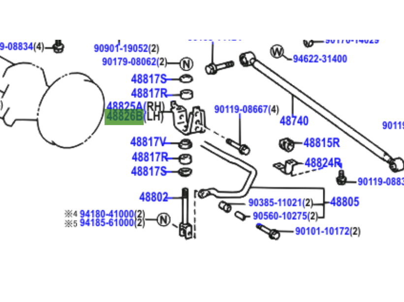 Support gauche de biellette de barre stabilisatrice arrière côté châssis HDJ100