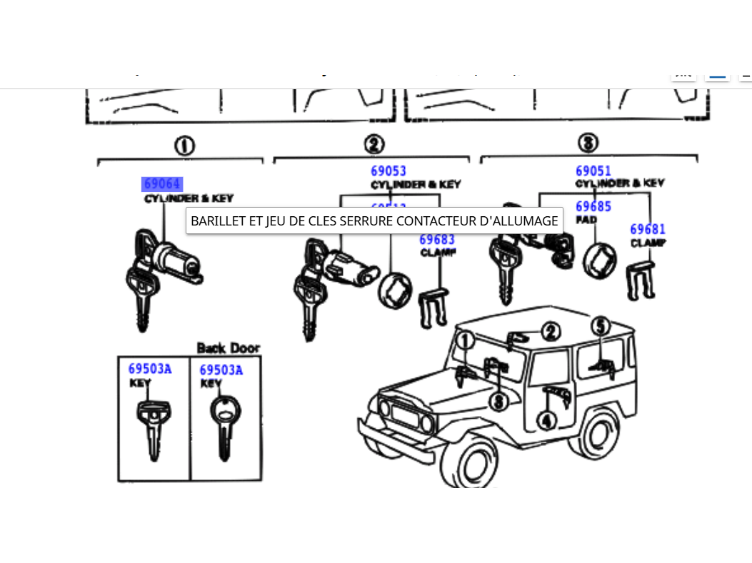 Pièce identifiée par la référence 69064 en surbrillance sur l'éclaté en photo