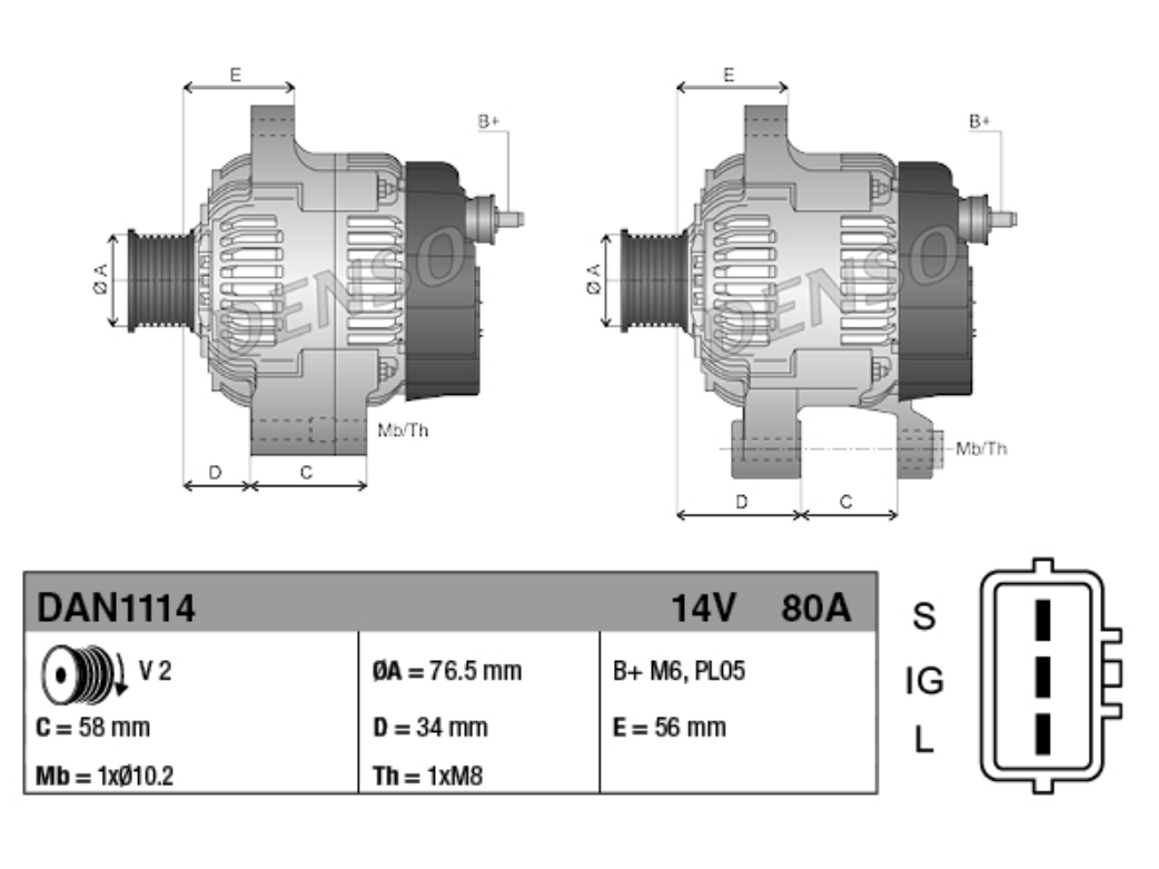 Alternateur Denso 12V 80A NEUF prise ovale Land Cruiser HDJ80 HDJ100 HZJ7