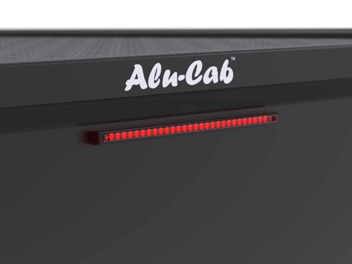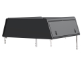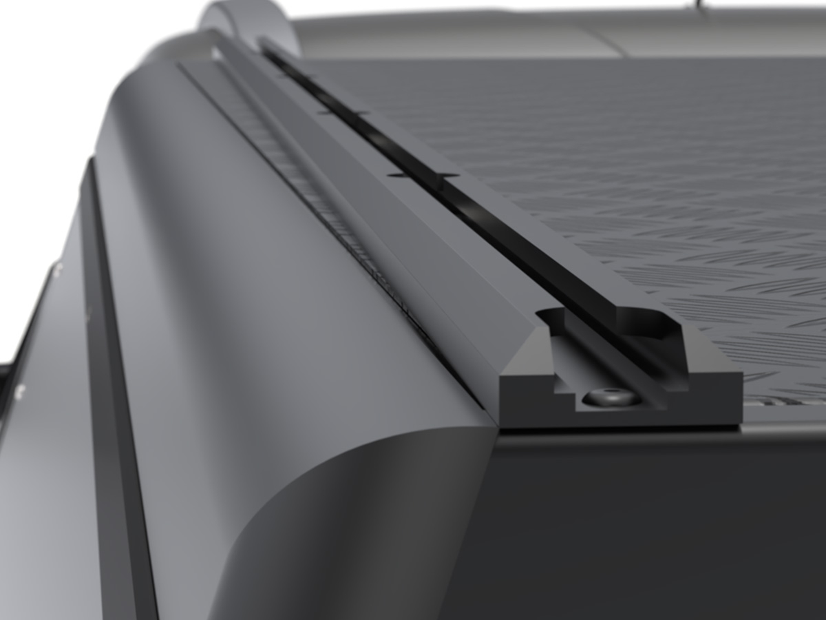 Contrairement aux autres hardtops Alu-Cab, la version Explorer Guard adopte un design sans vitres. Ce choix technique renforce la rigidité globale de la structure et améliore la protection du matériel transporté face aux chocs, aux intempéries et aux agressions extérieures. Les trois ouvrants (latéral gauche, latéral droit et hayon arrière) assurent un accès rapide et pratique à la benne, sans avoir à grimper à l'intérieur. Le système de fermeture à recouvrement avec double joint garantit une excellente étanchéité contre la pluie, la poussière et le vent.