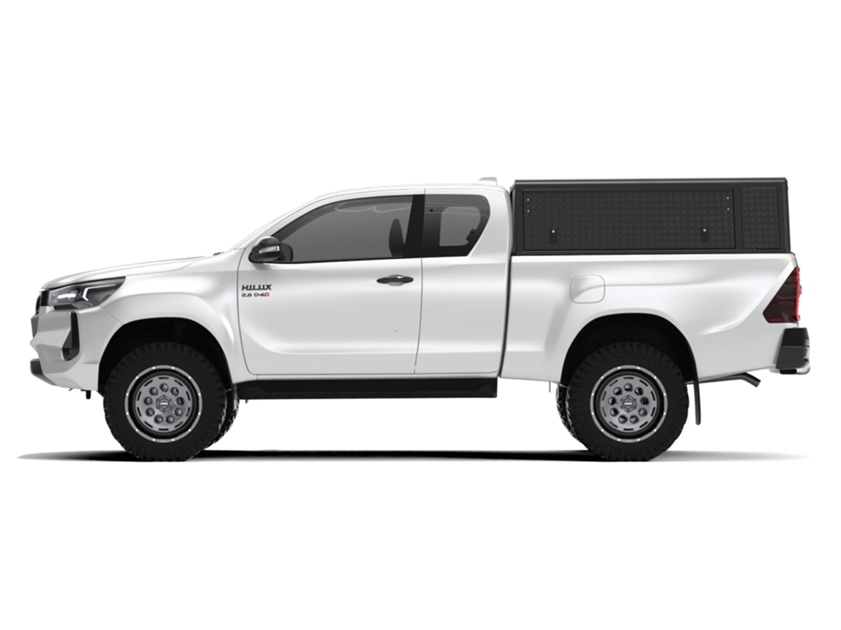 Le Hardtop Alu-Cab Explorer Guard en aluminium noir strié est conçu pour transformer la benne du Toyota Hilux Revo extra cabine en un espace de chargement fermé, sécurisé et parfaitement protégé. Sa construction quasi intégrale en aluminium strié de haute qualité lui confère une excellente résistance naturelle à la corrosion et aux UV, adaptée aussi bien aux environnements très chauds qu'aux conditions climatiques plus extrêmes. Pensé pour un usage intensif, ce hardtop répond aussi bien aux besoins professionnels qu'aux exigences des sortie off-road.