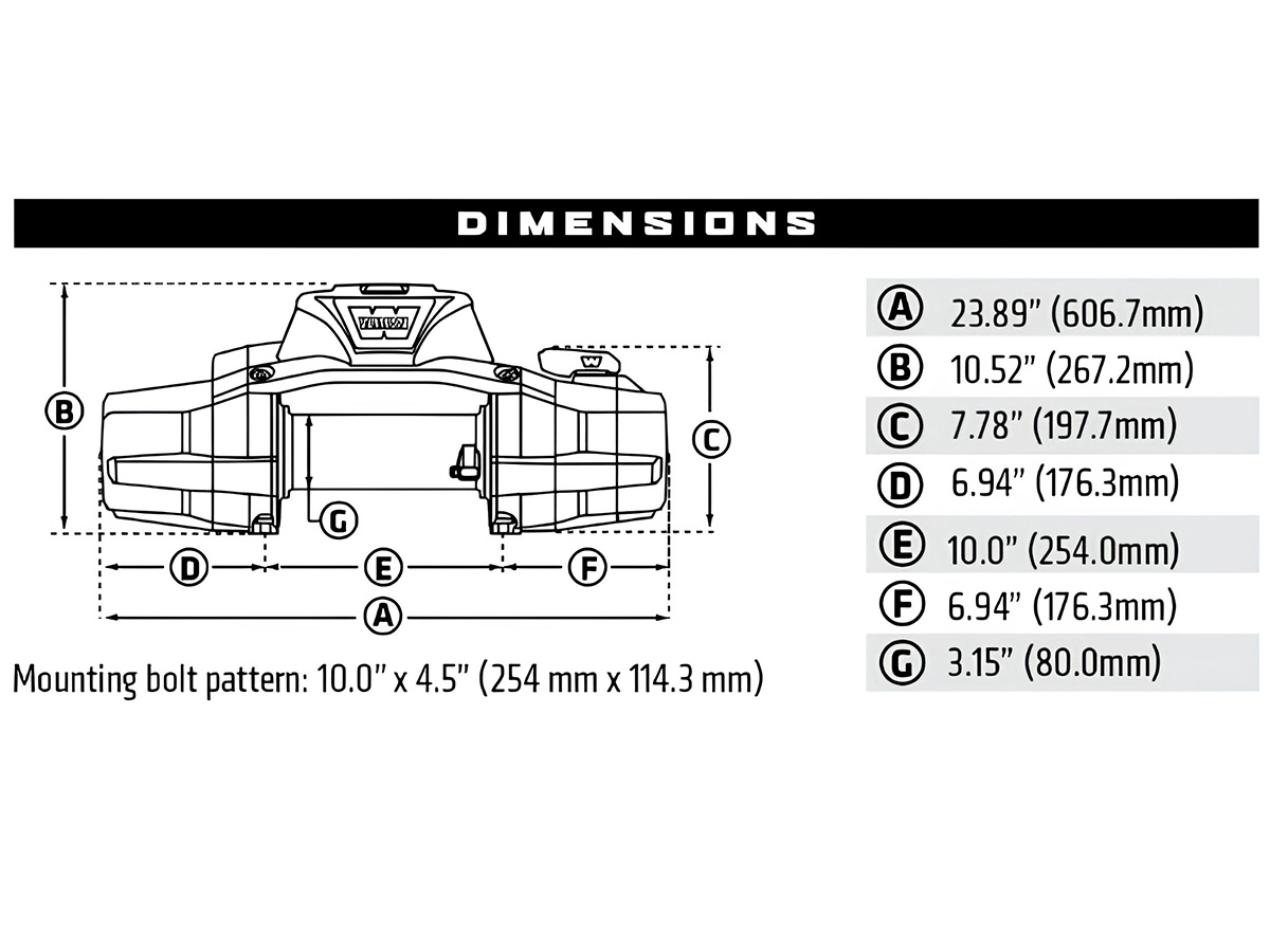 - Moteur : 12V DC à excitation série (conception haute performance WARN)