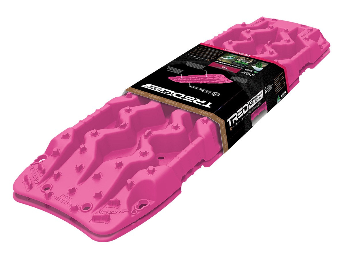 Fabriquées en Australie à partir de matériaux techniques ultra-résistants, les plaques TRED GT se distinguent par leur profil agressif et leur structure pensée pour maximiser l'adhérence des pneumatiques lors des manœuvres de remorquage. Leur forme ergonomique et leur surface texturée permettent une manipulation facile, même avec des gants, tandis que les encoches latérales facilitent leur positionnement sous les roues. Sa couleur rose lui permet d'être beaucoup plus facile à repérer sur le terrain, ce qui évite de la perdre et améliore la sécurité lors des manœuvres de remorquage.
