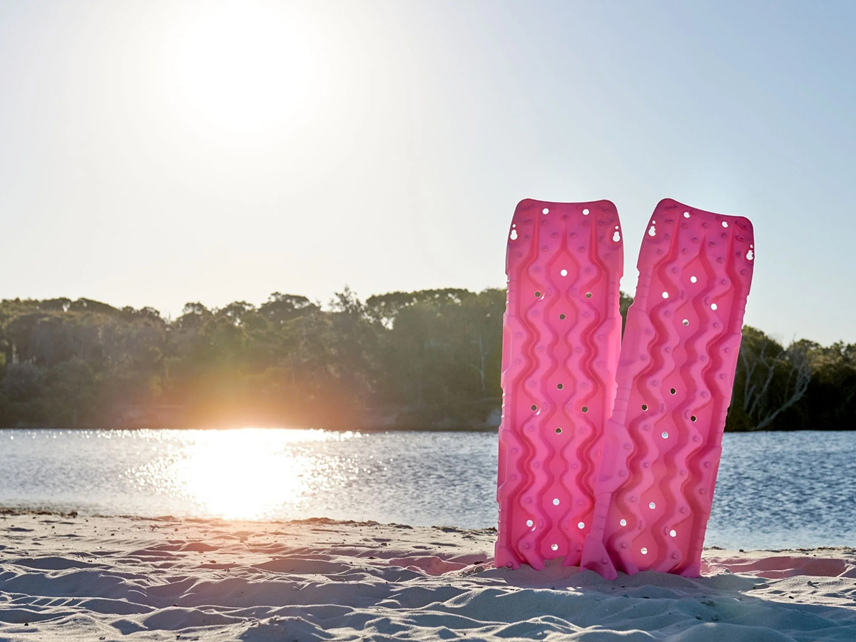 Les plaques à sable GT Recovery de TRED en édition spéciale rose, sont des accessoires très pratiques pour les passionnés de 4x4, vans aménagés, camping-cars et caravanes qui s'aventurent sur des terrains difficiles. Conçues pour offrir une traction optimale en situation de perte d'adhérence, elles permettent de sortir efficacement d'un enlisement sur sable, boue ou terrain meuble.