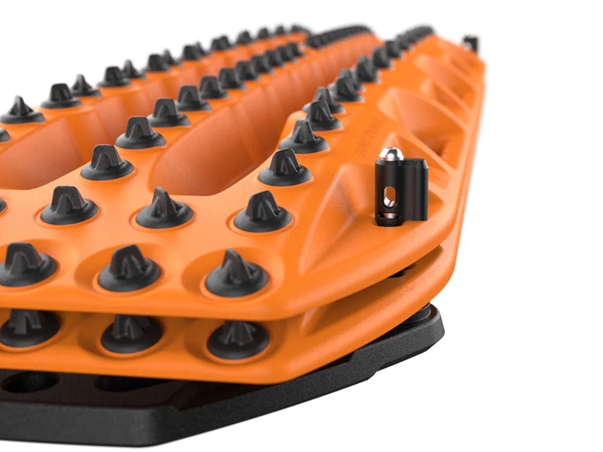 Les Universal Pins permettent de fixer solidement n'importe quel modèle de plaques Maxtrax : MKII, LITE, XTREME, ainsi que les Mini et Motoboard. Leur conception autorise le transport de deux plaques, en mélangeant éventuellement plusieurs modèles. Chaque axe intègre un système de verrouillage rotatif permettant d'insérer un cadenas (cadenas Maxtrax 30 mm recommandé, non fourni).