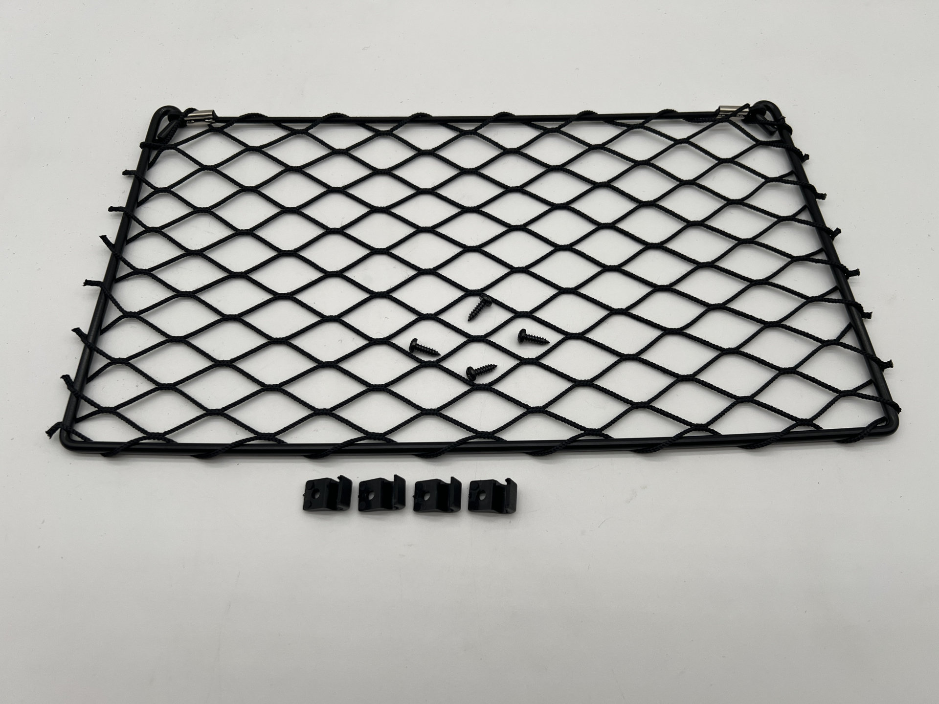 Filet de rangement avec cadre acier noir 370x200mm - avec cavaliers de fixation et vis