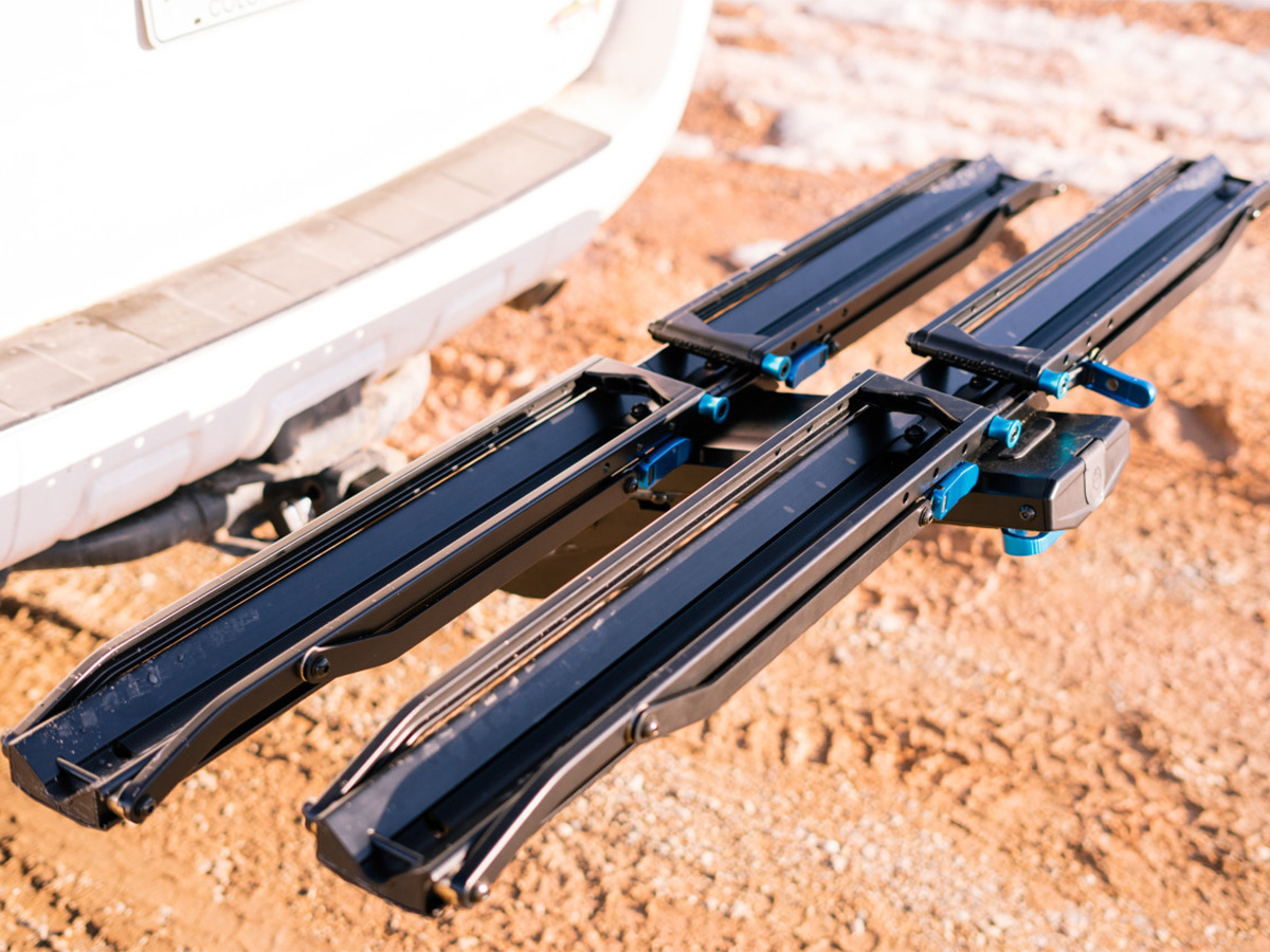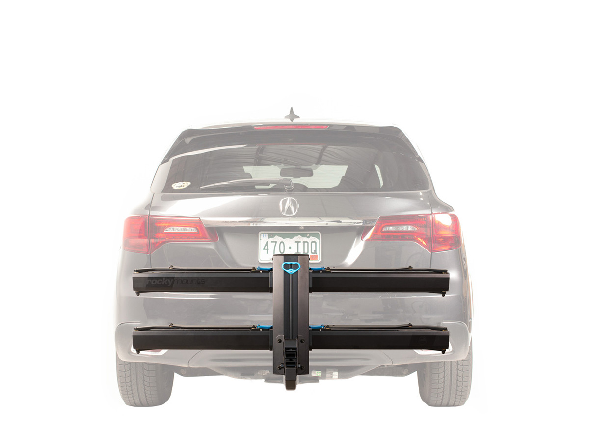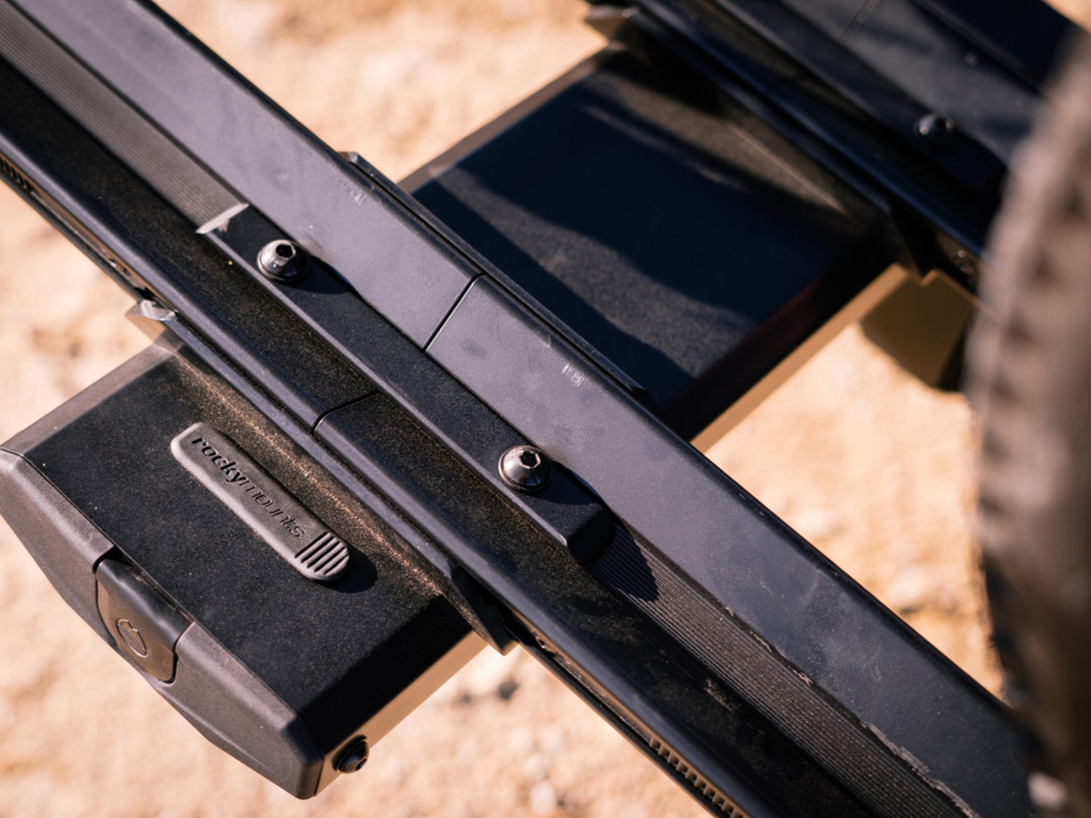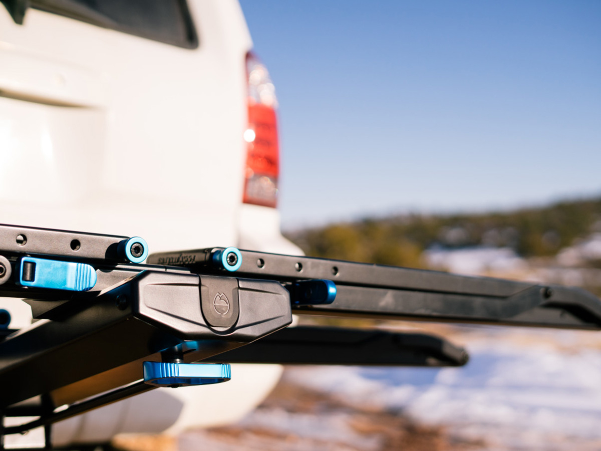 Cette conception autorise un chargement asymétrique des vélos afin d'éviter toute interférence entre les guidons, même avec des géométries modernes. Fidèle à la philosophie Rocky Mounts, le Guide Rail réduit volontairement l'usage de pièces plastiques, au profit d'une structure solide et durable, tout en conservant la capacité et la fiabilité éprouvées de la famille MonoRail. Pliable contre le véhicule et basculant à 30°, il permet l'accès au hayon sans dépose des vélos.