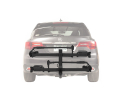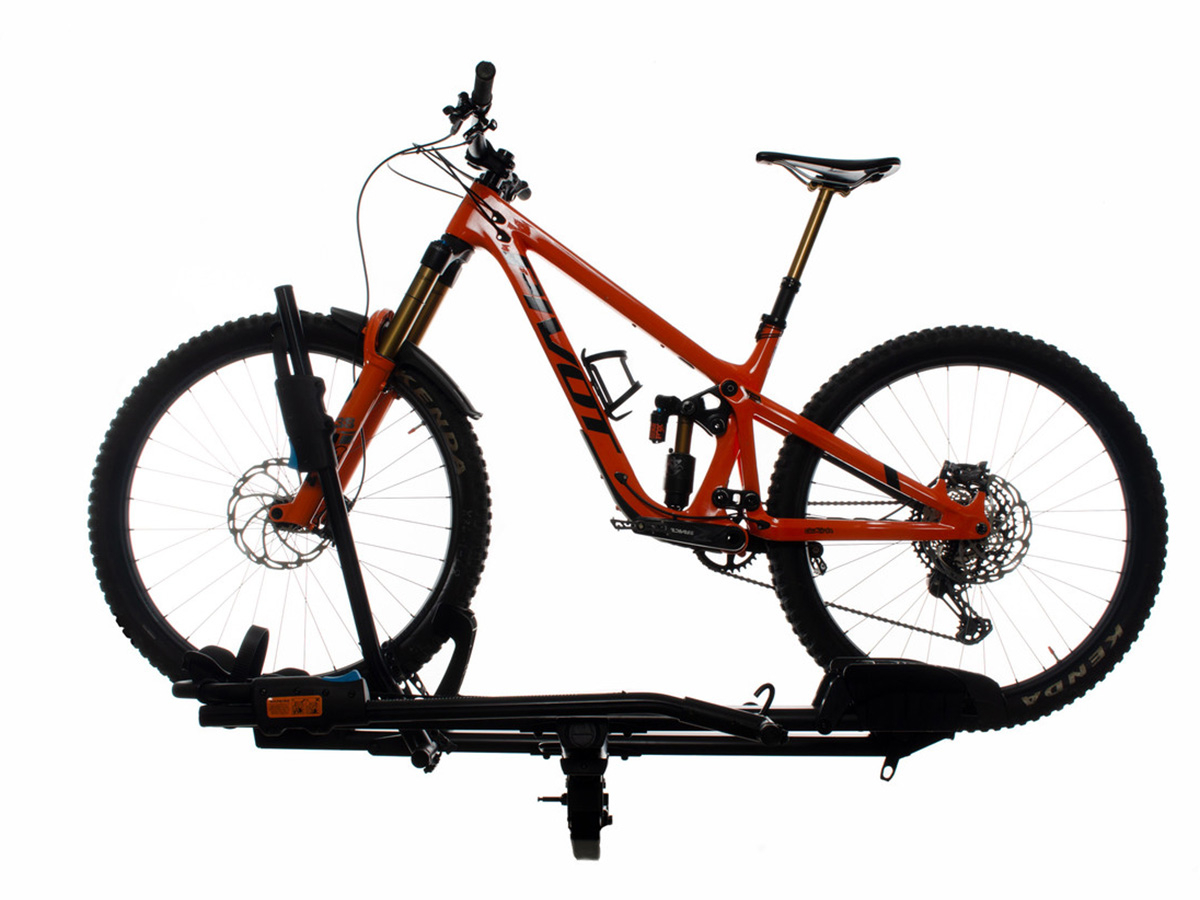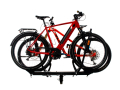 Le système de plateforme étagée améliore le dégagement entre les cintres, tandis que la base relevée optimise l'angle de sortie du véhicule. Le porte-vélos se replie contre le véhicule et bascule pour faciliter l'accès au hayon, même lorsque les vélos sont chargés.