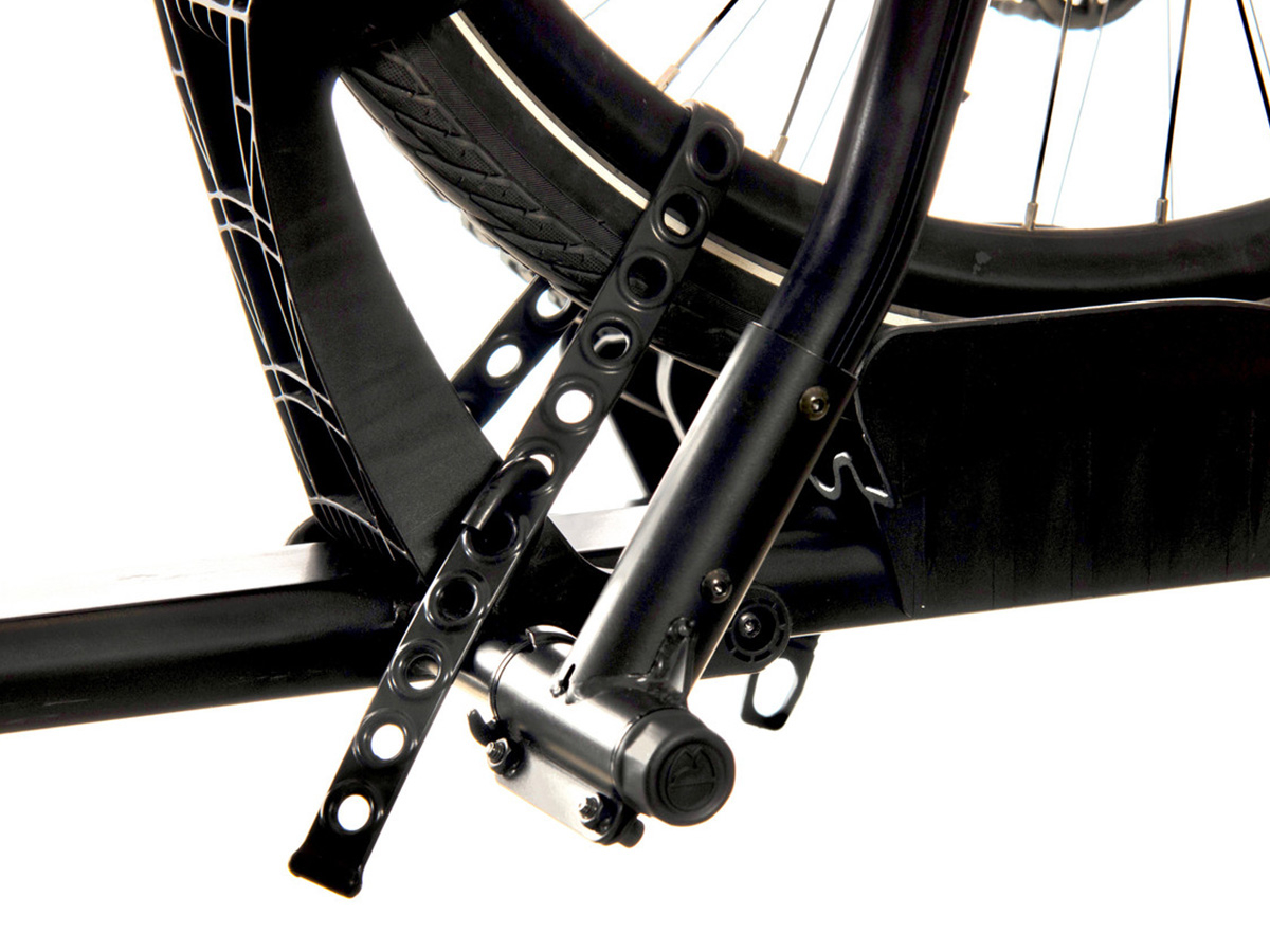 - Fixation du vélo : maintien par la roue avant, sans contact avec le cadre