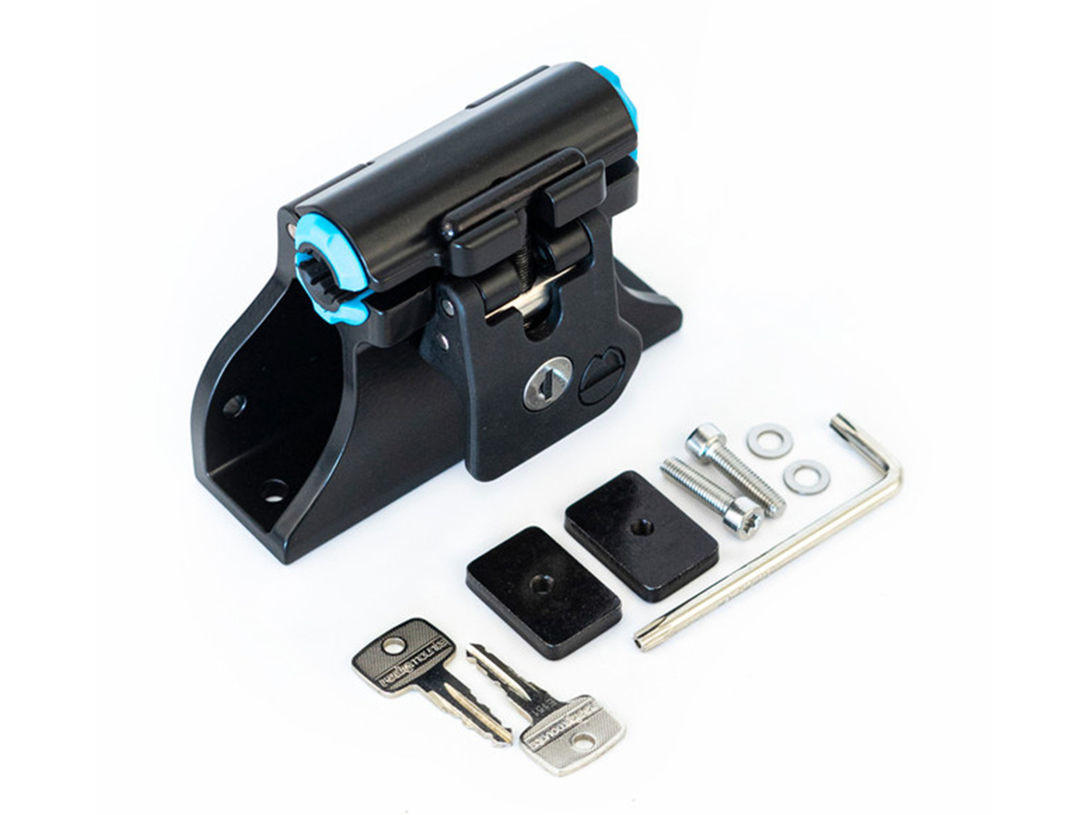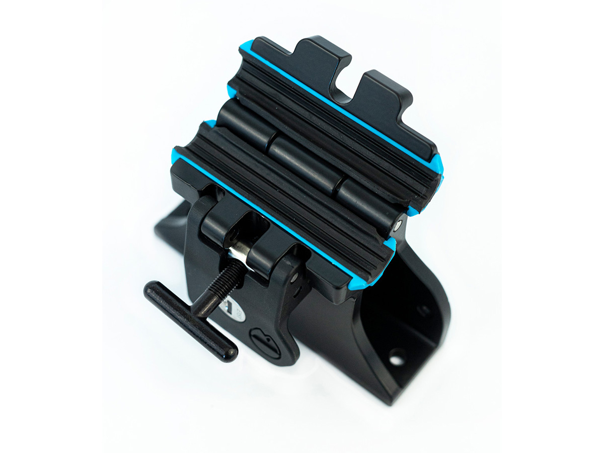Grâce à un insert en TPU surmoulé, le DropTop accepte directement les axes traversants de 12 mm et 15 mm, tout en restant compatible avec les axes de 20 mm après retrait des cales. Le support peut être installé aussi bien horizontalement que verticalement et s'intègre parfaitement aux rails d'origine des bennes Toyota Tacoma et Tundra. Il constitue une solution polyvalente pour pick-up, fourgons et aménagements utilitaires orientés transport de vélos.