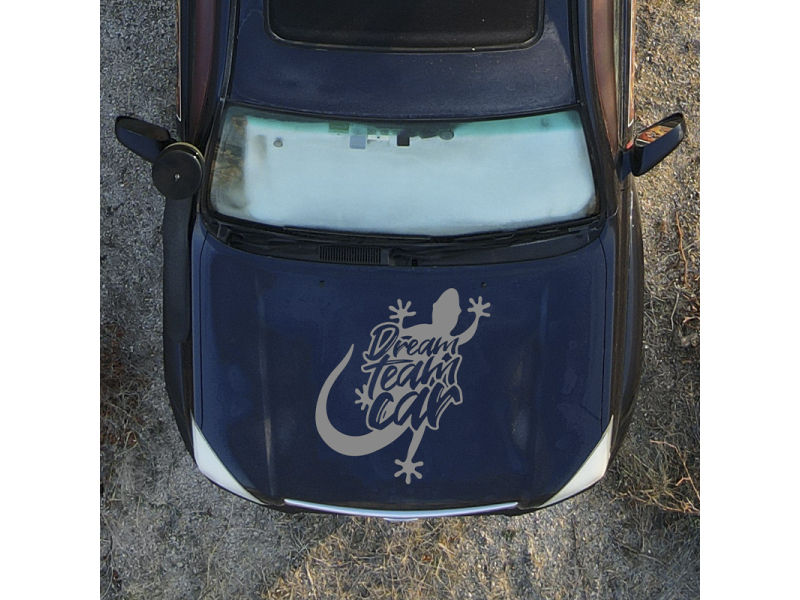 Les lettres de l'autocollant capot sont évidées, laissant apparaître la couleur de la carrosserie.
