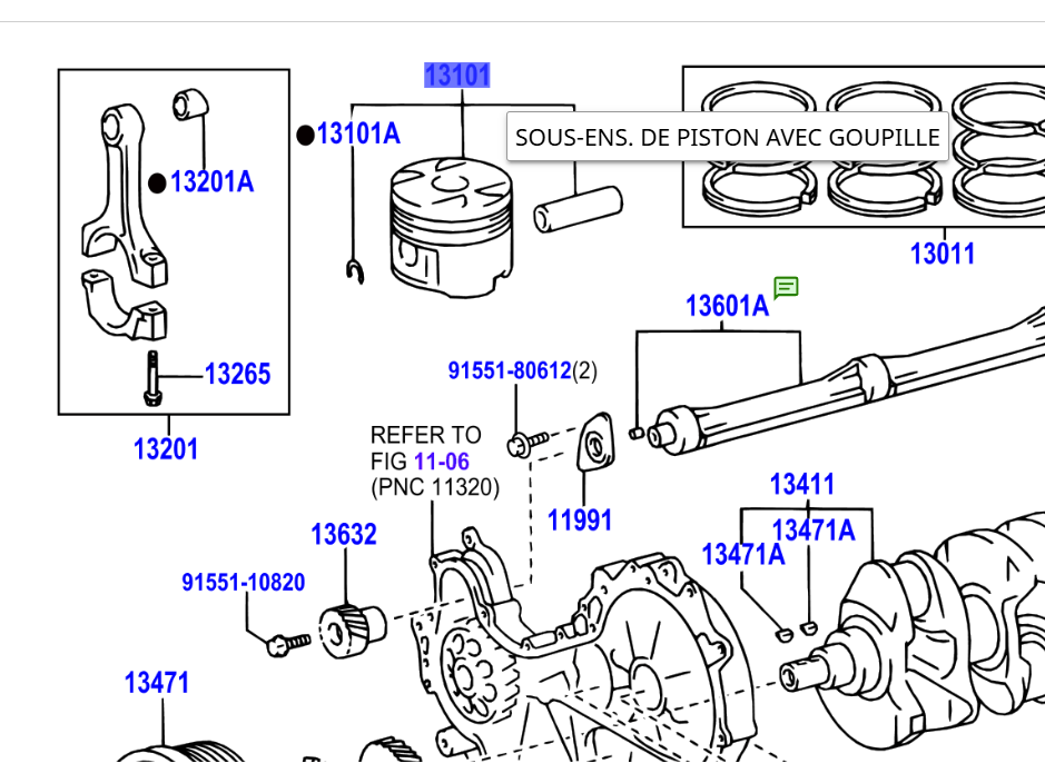 Pièce identifiée par la référence 13101 en surbrillance sur l'éclaté en photo