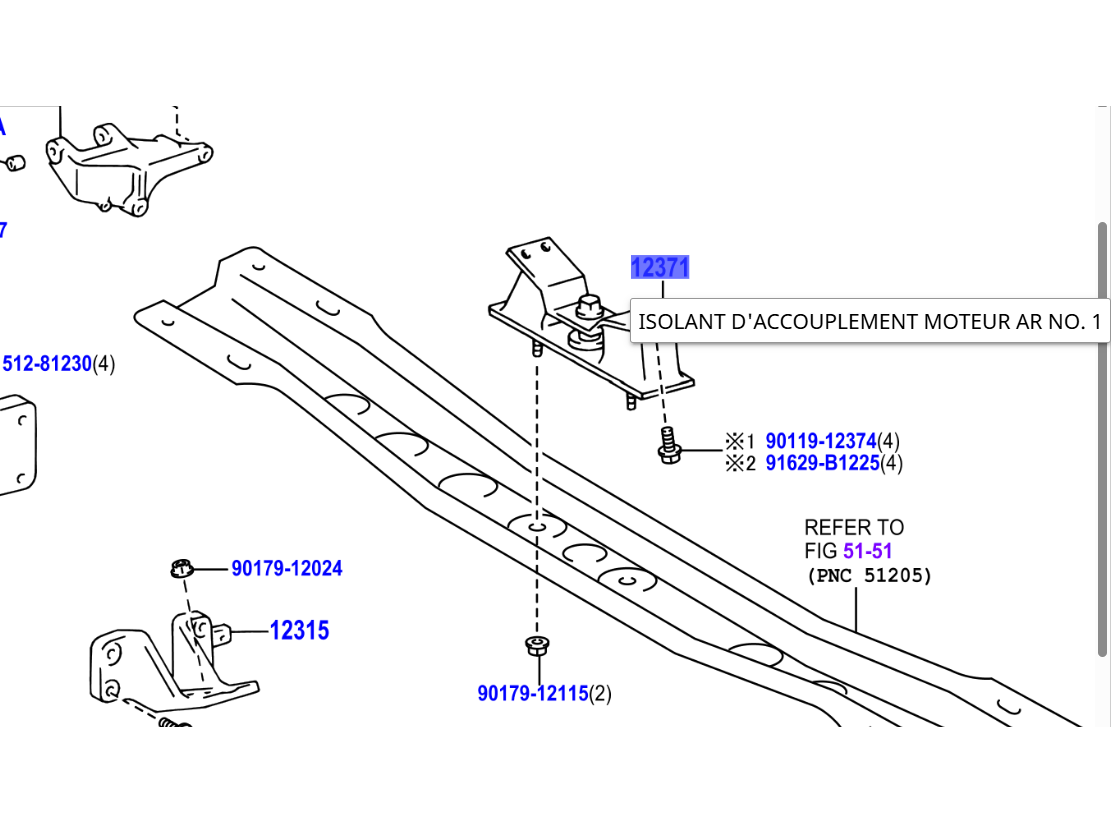 Support moteur situé sous l'ensemble boite de vitesses et boite de transfert.