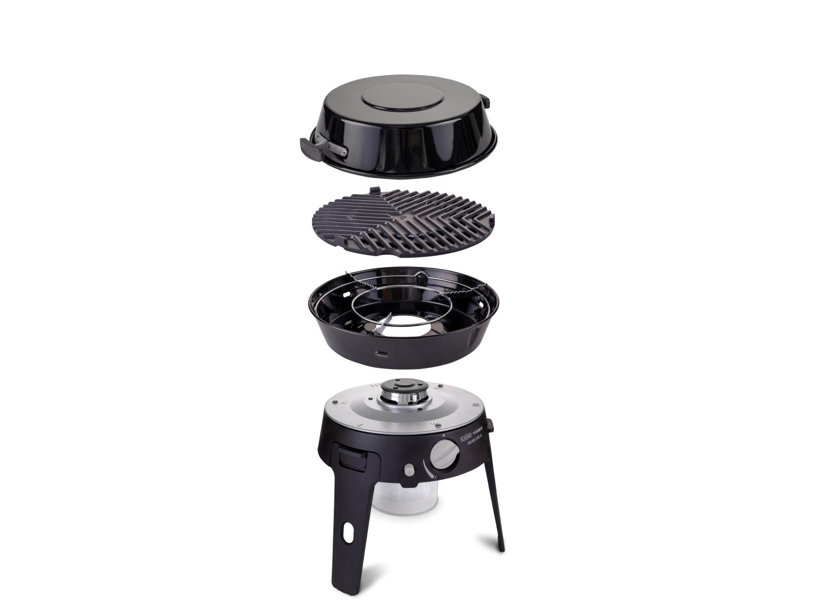 Inclus : support casserole, grille BBQ et poêle/couvercle