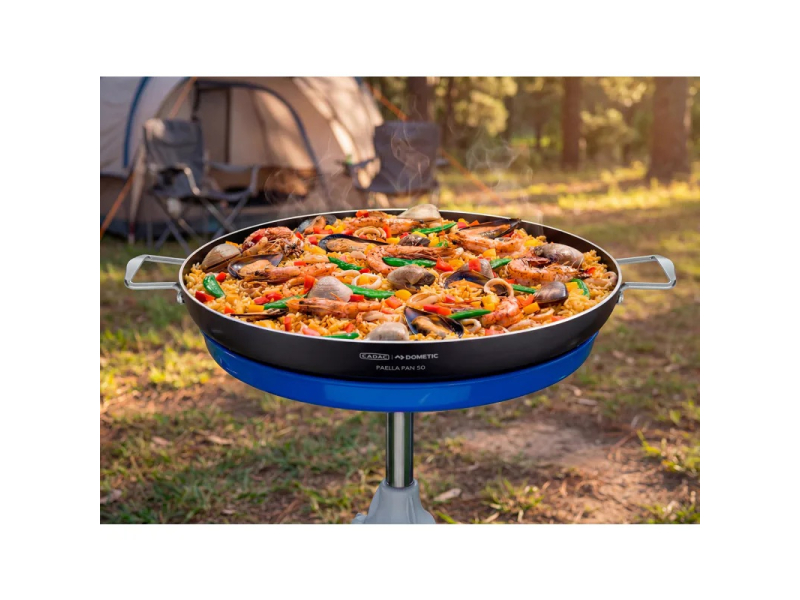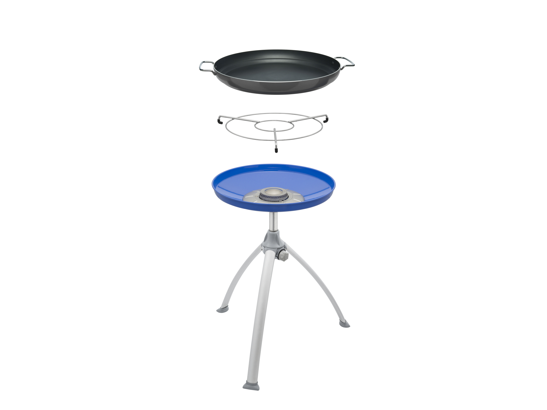 Le Barbecue à gaz Paella Braai Cadac avec plat Ø 47 cm est une solution de cuisson nomade conçue pour une utilisation en extérieur, au camping, en bivouac ou en voyage. Cette variante se caractérise par son grand plat à paella de 47 cm, utilisable comme surface de cuisson large avec bords hauts, ainsi que par son support de casserole inclus. Son trépied léger avec pieds démontables facilite le rangement et le transport, tandis que le sac fourni permet de l'emporter plus facilement lors des déplacements.