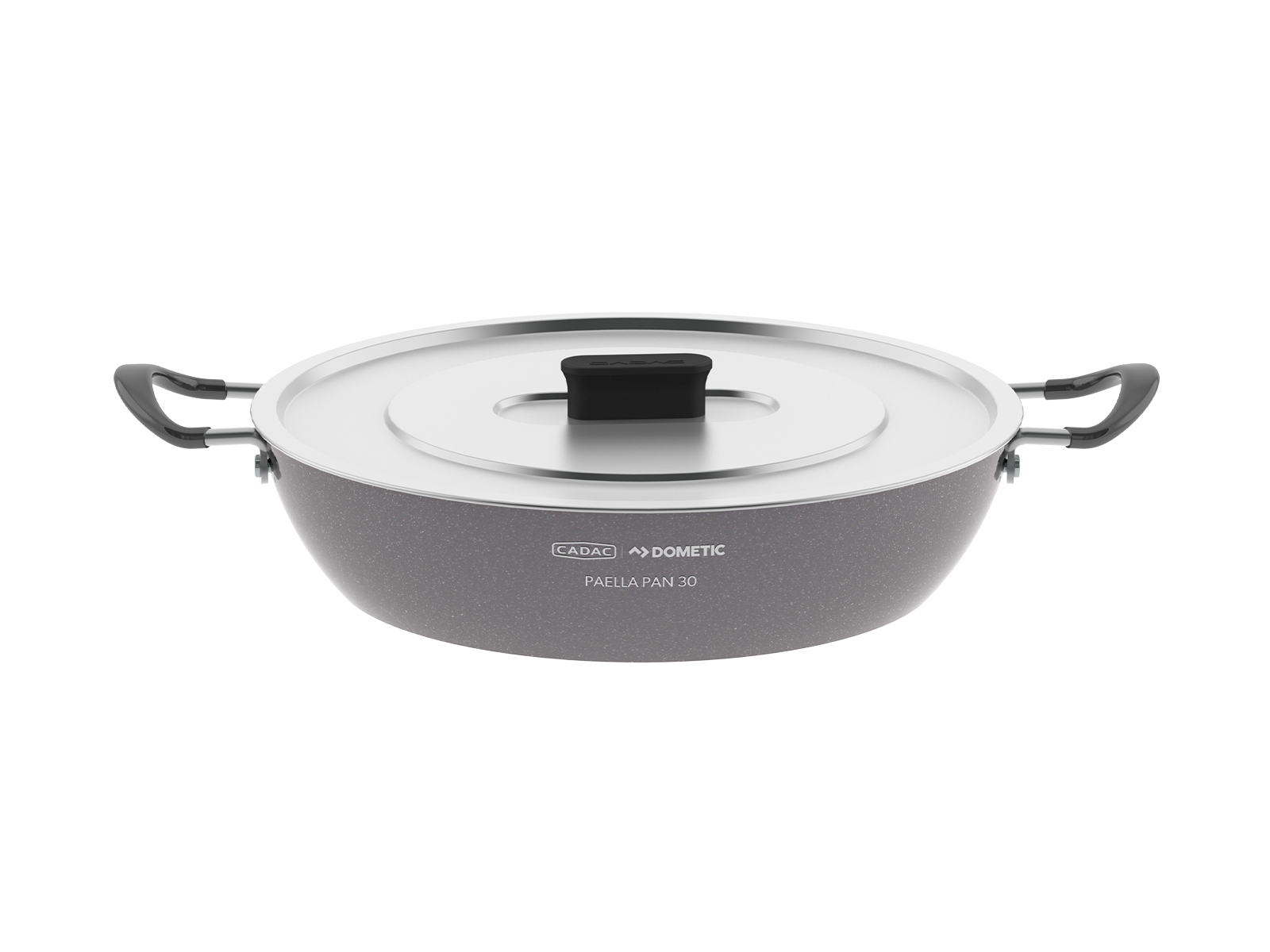 Le plat à paella 30 Cadac est un plat léger de 29 cm de diamètre en aluminium antiadhésif, conçu pour faciliter la cuisson en extérieur. Compact et simple à utiliser, il est idéal pour préparer des paellas, risottos, pâtes, petits-déjeuners ou autres repas de camping.