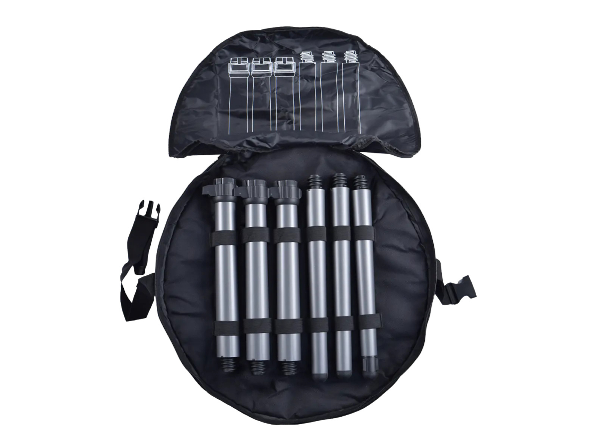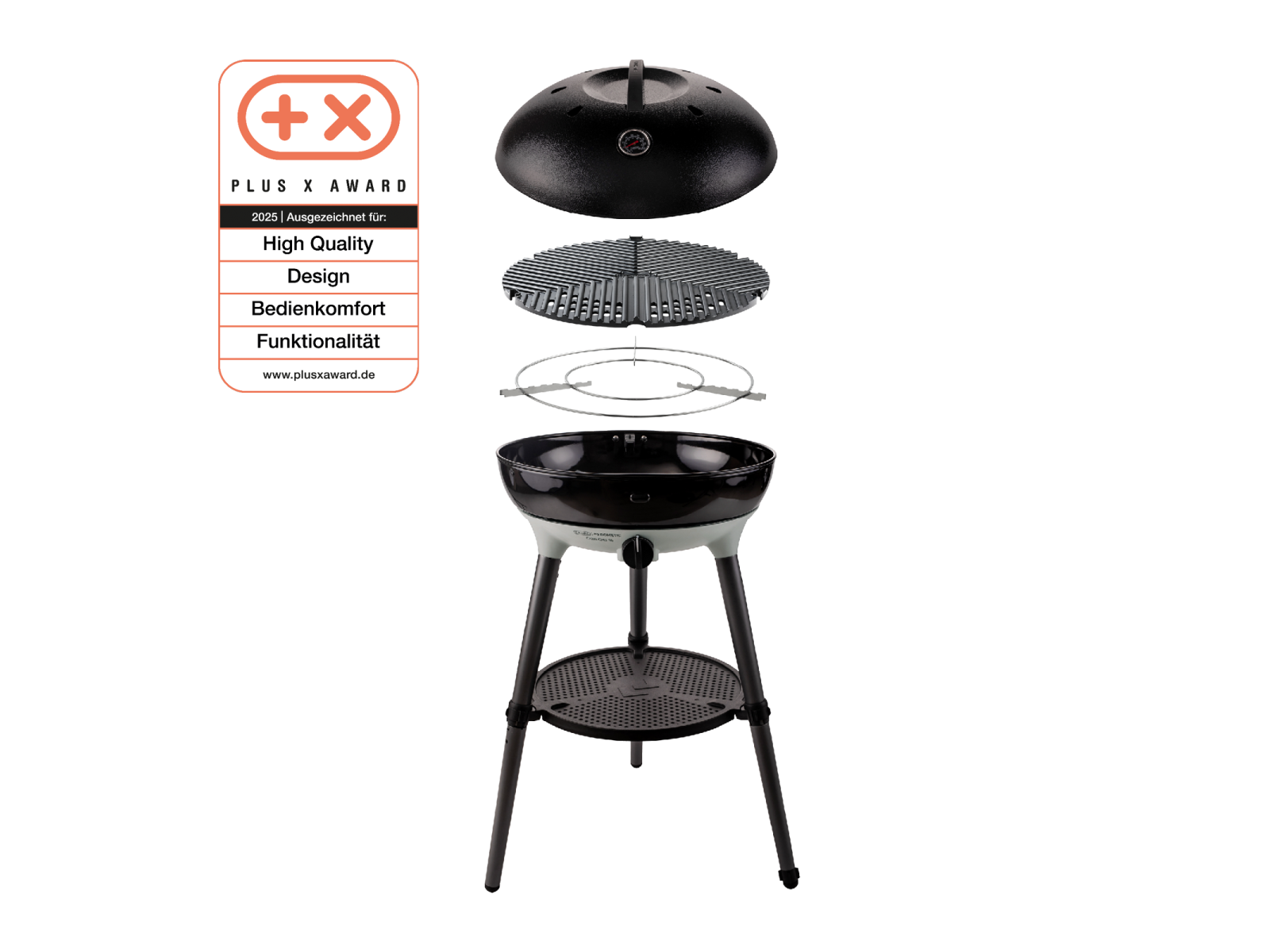 Inclus : grille de barbecue, support pour casserole, couvercle avec thermomètre, sacs de transport