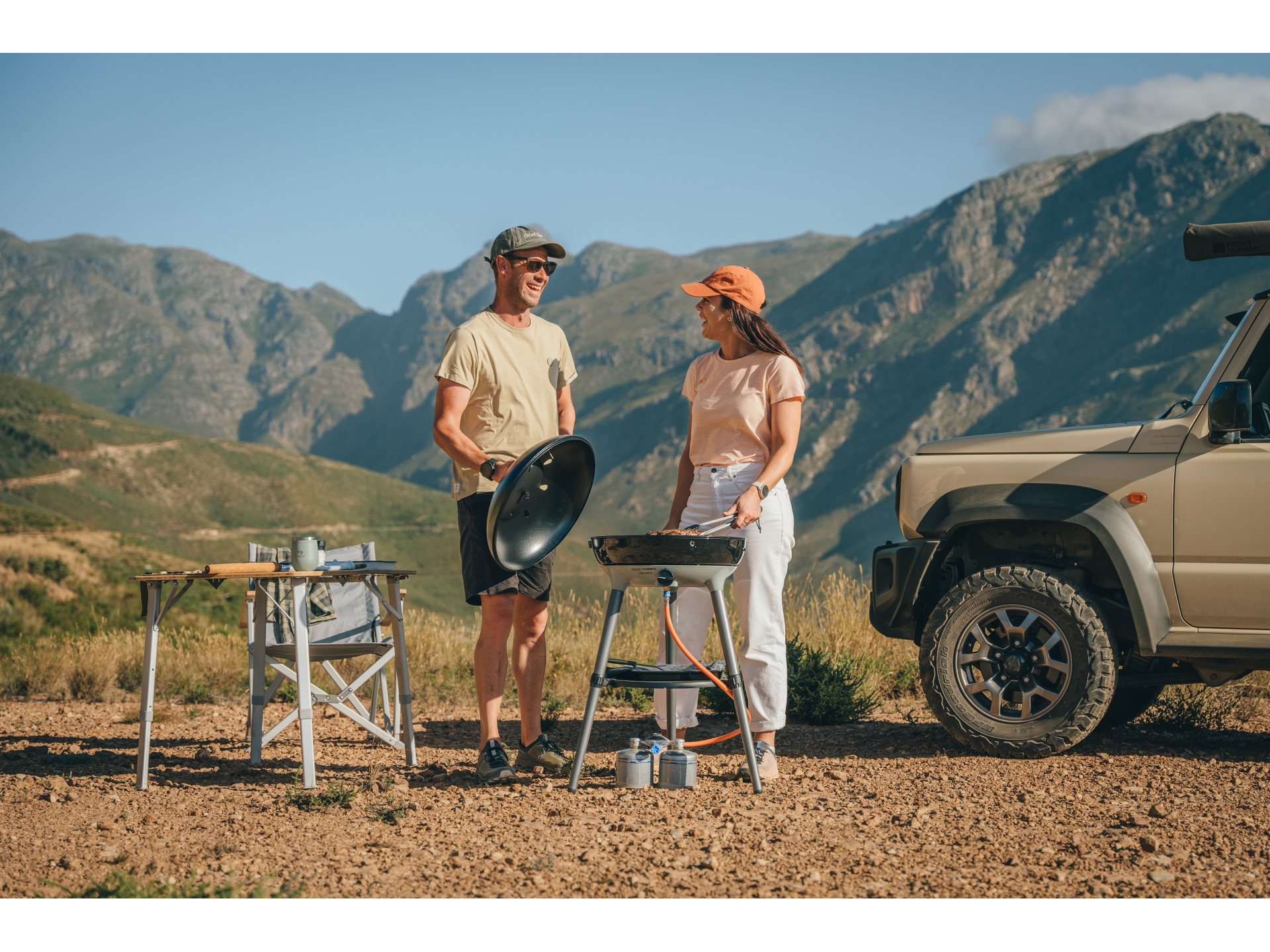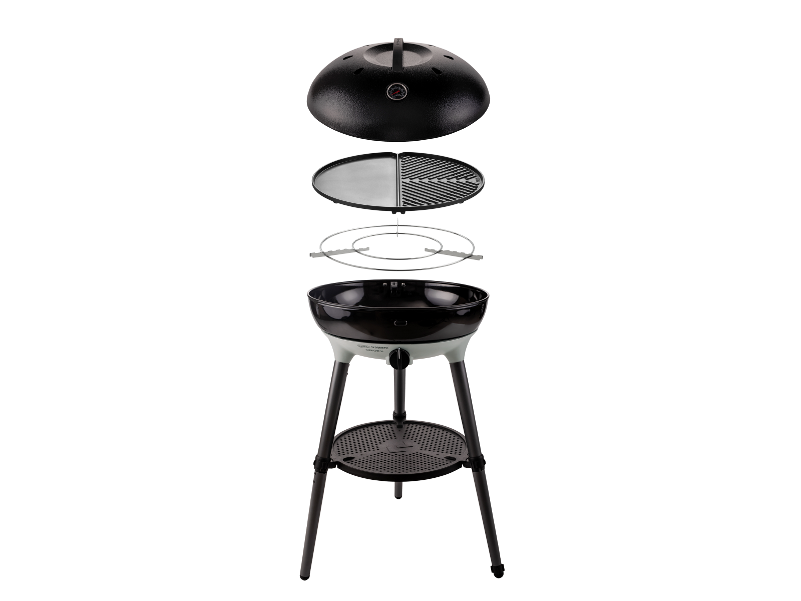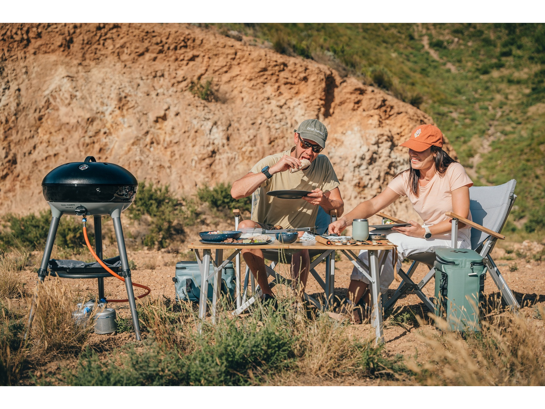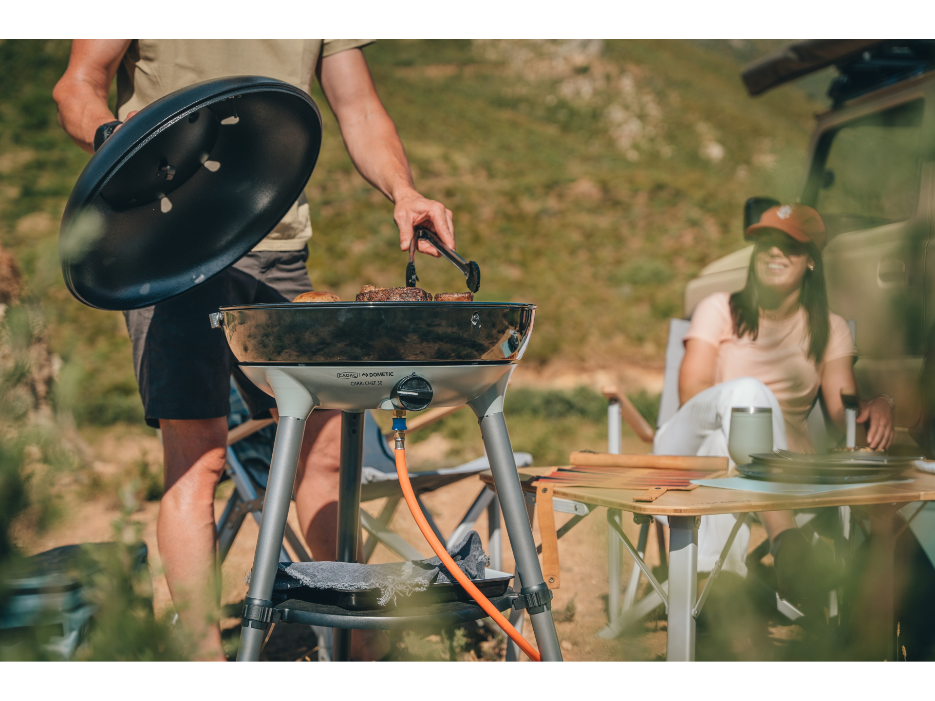 Le barbecue gaz Cadac Carri Chef 50 BBQ 2 Plancha est un barbecue multifonction Ø 50 cm conçu pour la cuisson en extérieur, au camping, en bivouac ou à la maison. Cette version se différencie par sa surface BBQ 2 Plancha, composée d'une moitié grille BBQ et d'une moitié plancha lisse, idéale pour varier les cuissons sur une même surface. Il est livré avec un couvercle équipé d'un thermomètre intégré, un support de casserole, une surface BBQ 2 Plancha et un sac de transport. Son couvercle peut également s'accrocher sur le côté afin de servir de pare-vent et de protection anti-éclaboussures.