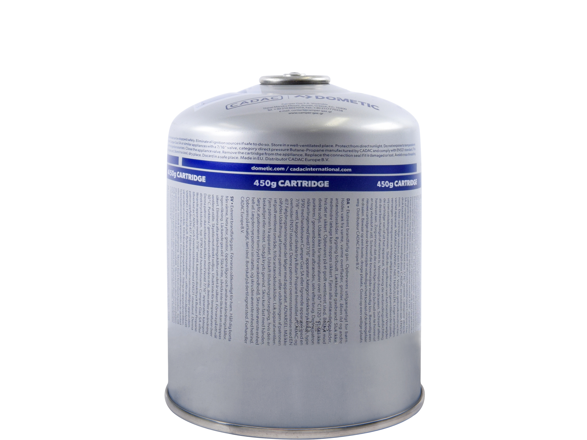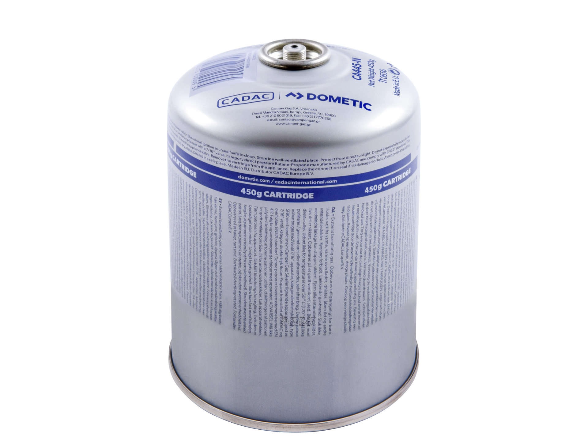 La cartouche de gaz CADAC 445 g est une cartouche filetée de type EN417, conçue pour alimenter les produits CADAC compatibles comme le Safari Chef HP et le Power Pak. Elle contient un mélange de gaz butane/propane et dispose d'une soupape de sécurité standard auto-obturante, pratique pour une utilisation fiable en camping, en pique-nique ou en randonnée.