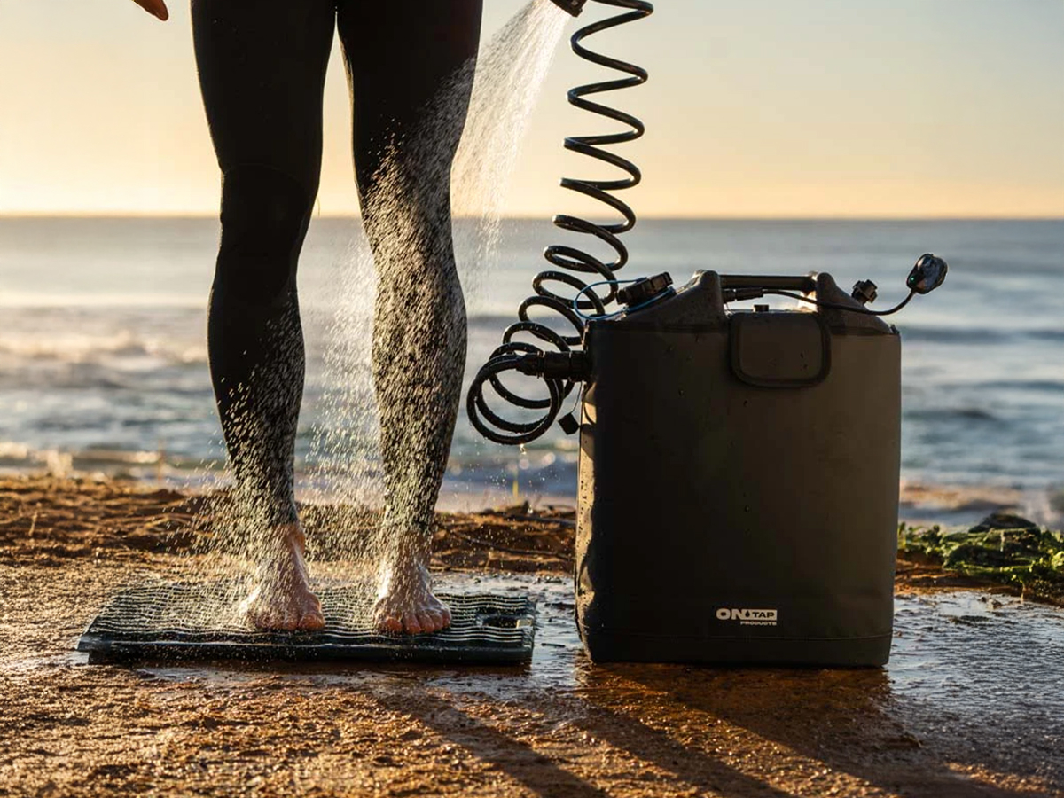 Pensé pour les passionnés d'aventure en plein air, le tapis de douche extérieur Mariner Mat bleu, signé ONTAP, offre une surface propre, pratique et confortable pour se changer ou se rincer, où que vous soyez. Idéal après une session surf, une journée de randonnée ou un bivouac poussiéreux, ce tapis isole efficacement du sol rugueux, brûlant ou humide, tout en empêchant sable, terre ou débris de remonter. Ses canaux d'évacuation et ses motifs en relief facilitent l'écoulement de l'eau et maintiennent vos pieds au sec.