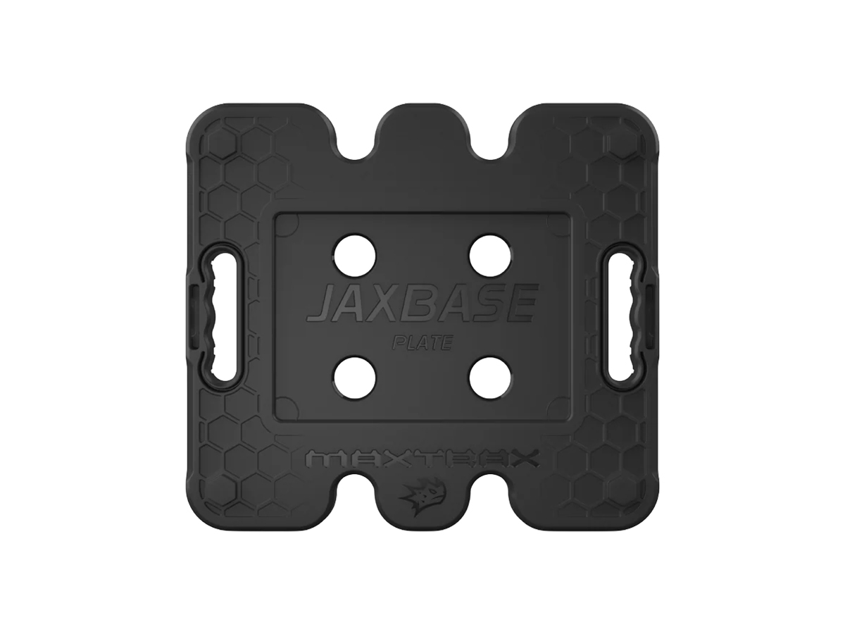 Pratique et optimisée pour le rangement, la Jaxbase se fixe directement sous les plaques de désensablement Maxtrax MKII, XTREME et LITE, permettant de l'avoir toujours sous la main sans encombrer l'espace disponible. Sa construction durable et son design à profil bas assurent une excellente résistance aux contraintes du terrain tout en se glissant discrètement sous les planches de récupération. Disponible en noir, elle reste visible même en conditions difficiles, notamment lors d'interventions en faible luminosité.