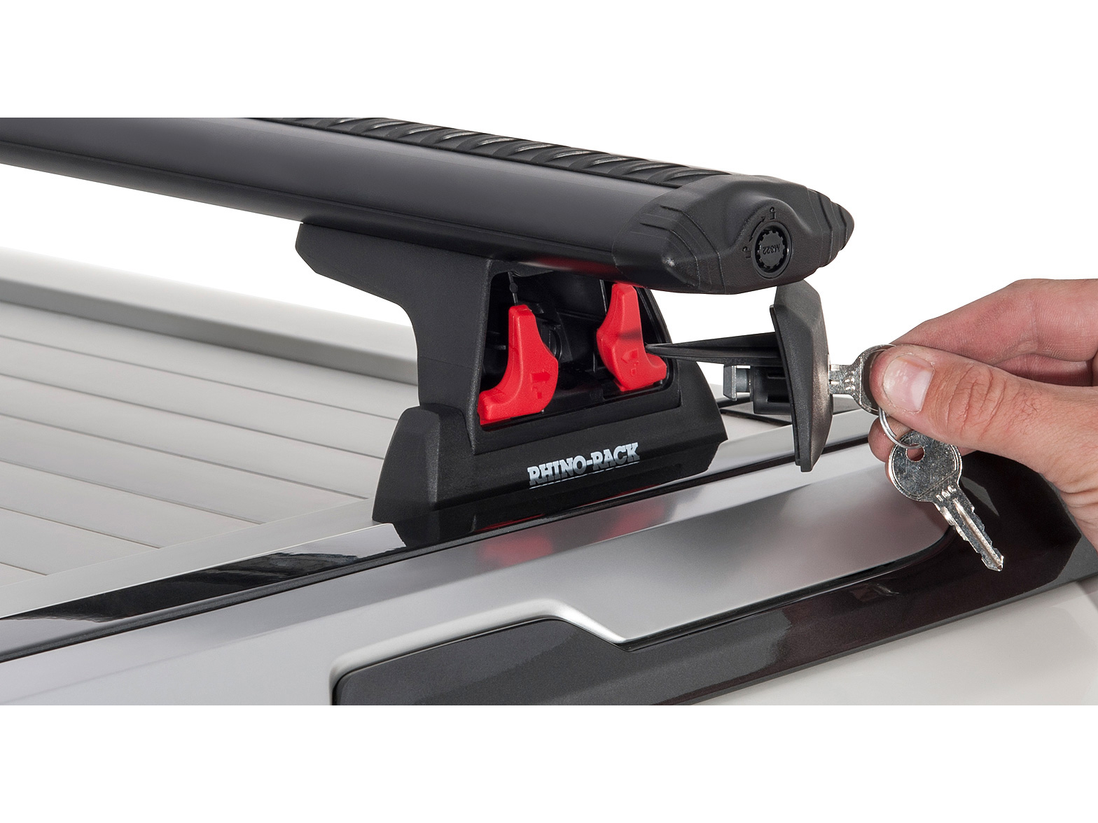 Le système de barres de toit RLT600 Sportz Quick Mount, de Rhino-Rack est fixé sur l'ensemble des rails d'origine sur les rails de volet roulant de votre véhicule (benne tubulaire). Ce sont les pieds qui distinguent le RLT600 un système de verrouillage à déclenchement simple signifie qu'une fois que vous avez fini d'utiliser l'espace sur le toit, le système peut être retiré d'une seule main. Retirez la plaque de couverture verrouillable, pincez les déclencheurs rouges ensemble et le tour est joué. L'ingénierie et la conception renforcent l'engagement de Rhino-Rack envers la solidité et la durabilité du Sportz Quick Mount RLT600.