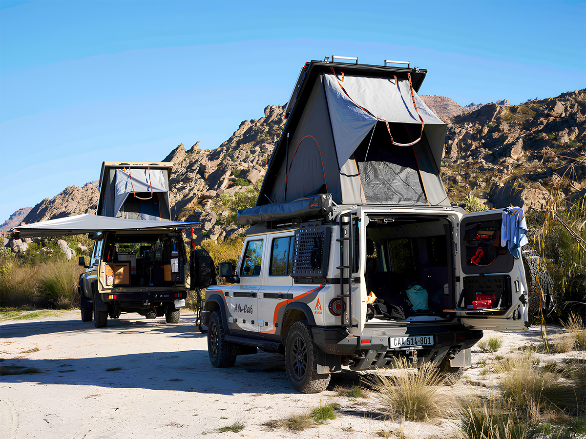 Le toit relevable Alu-Cab Silenus sublime l'INEOS Grenadier en le transformant en véritable base d'expédition autonome. Développé spécifiquement pour ce véhicule, il s'intègre harmonieusement à sa silhouette tout en remplaçant le toit d'origine par une structure en aluminium résistant. Il apporte un espace intérieur généreux, un couchage deux places confortable et des équipements pensés pour les voyages off-road et les expéditions longue durée.