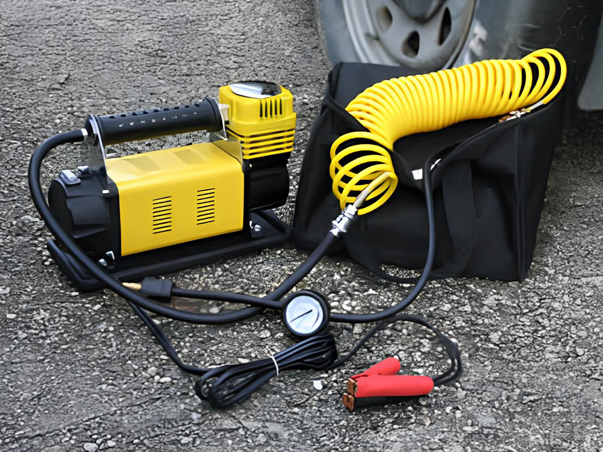 Il est livré dans une sacoche de transport , avec des pinces crocodiles pour faciliter la connexion à la batterie, un tuyau d'air de 8 mètres avec manomètre et embout rapide,