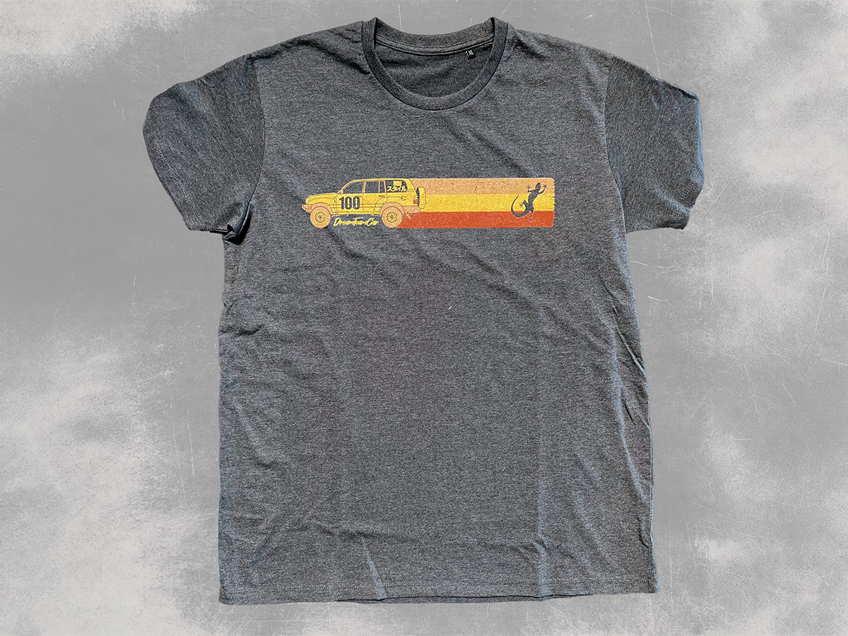 Le t-shirt homme HDJ100 Dream Team Car anthracite chiné s'inspire du Toyota Land Cruiser HDJ100, véritable référence dans l'univers du 4x4 pour ses capacités en expédition off-road et sa solidité. Confectionné en coton peigné 190g pré-rétréci, il offre une bonne tenue dans le temps ainsi qu'un toucher confortable. L'impression en sérigraphie sur la poitrine garantit une finition résistante et une identité visuelle fidèle à l'univers outdoor et tout-terrain. Sa coupe fit apporte une silhouette plus ajustée, complétée par un col rond pour un porté agréable au quotidien.