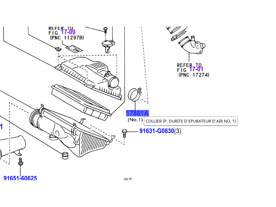 Pièce identifiée par la référence 17881A en surbrillance sur l'éclaté en photo