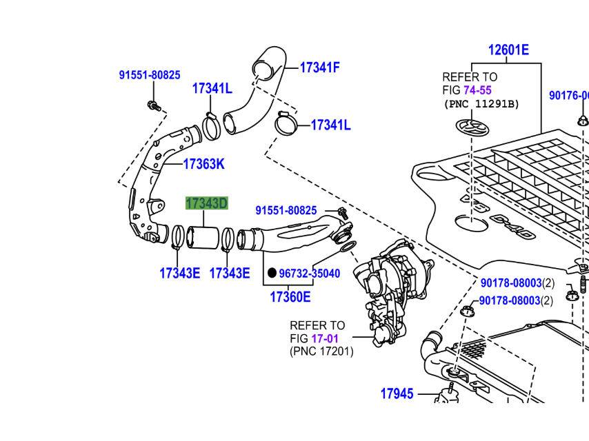 Pièce identifiée par la référence 17343D en surbrillance sur l'éclaté en photo