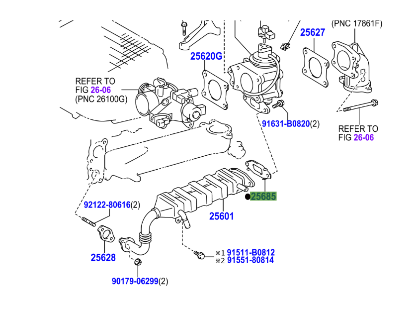 Joint entre refroidisseur et vanne EGR KDJ120 KDJ125 166cv