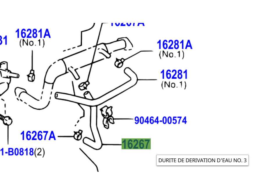 Pièce identifiée par la référence 16267 en surbrillance sur l'éclaté en photo