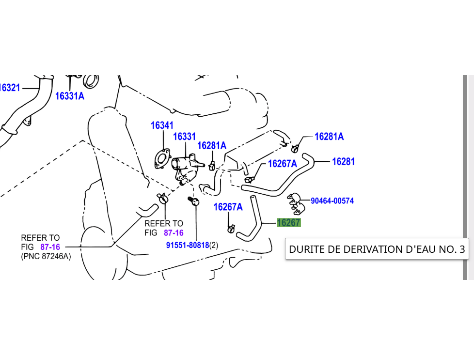 Pièce identifiée par la référence 16267 en surbrillance sur l'éclaté en photo
