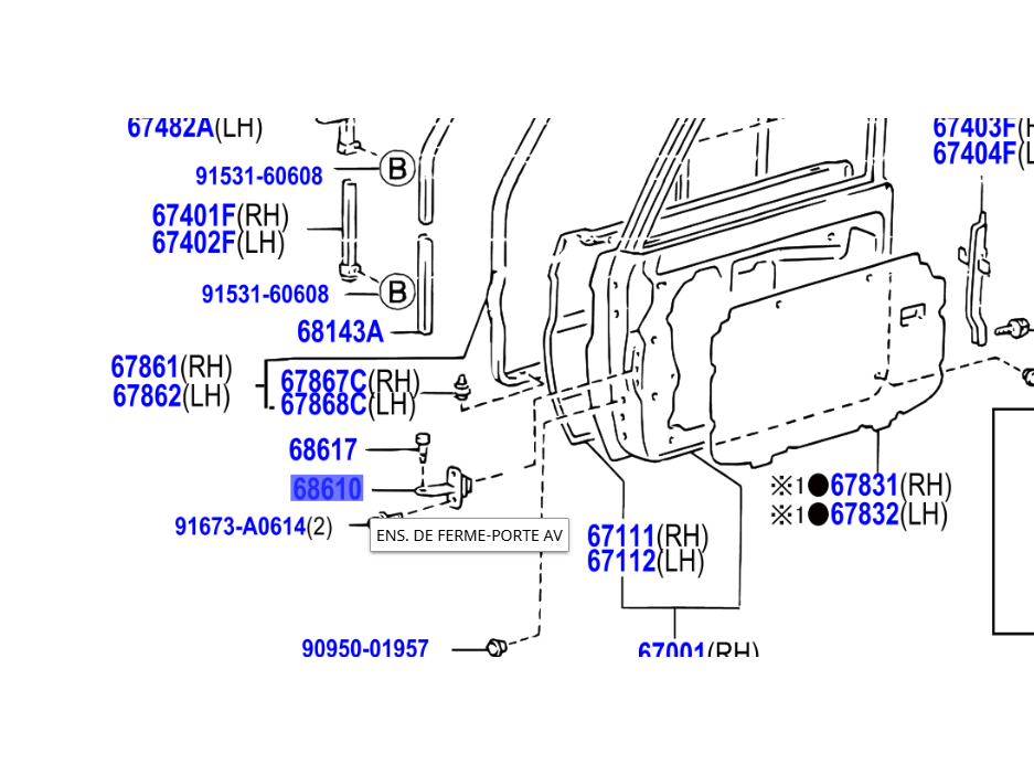 Pièce identifiée par la référence 68610 en surbrillance sur l'éclaté en photo