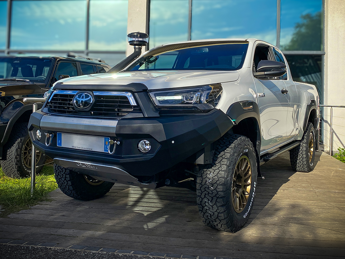 Ce pare-choc N4-Offroad pour Toyota Hilux Revo entre 2016 et 2019 facilite le franchissement et permet d'installer un treuil et un ski de protection avant N4-Offroad