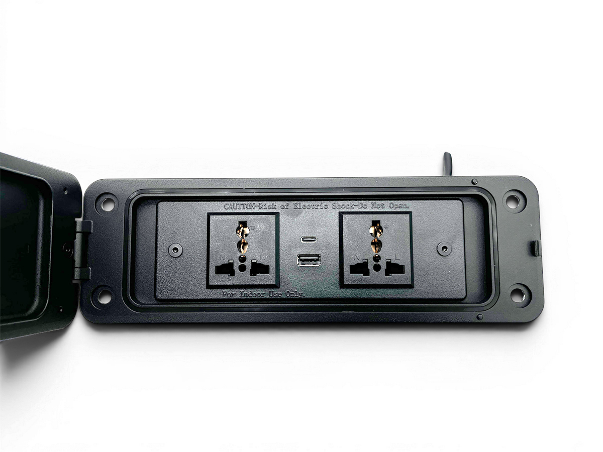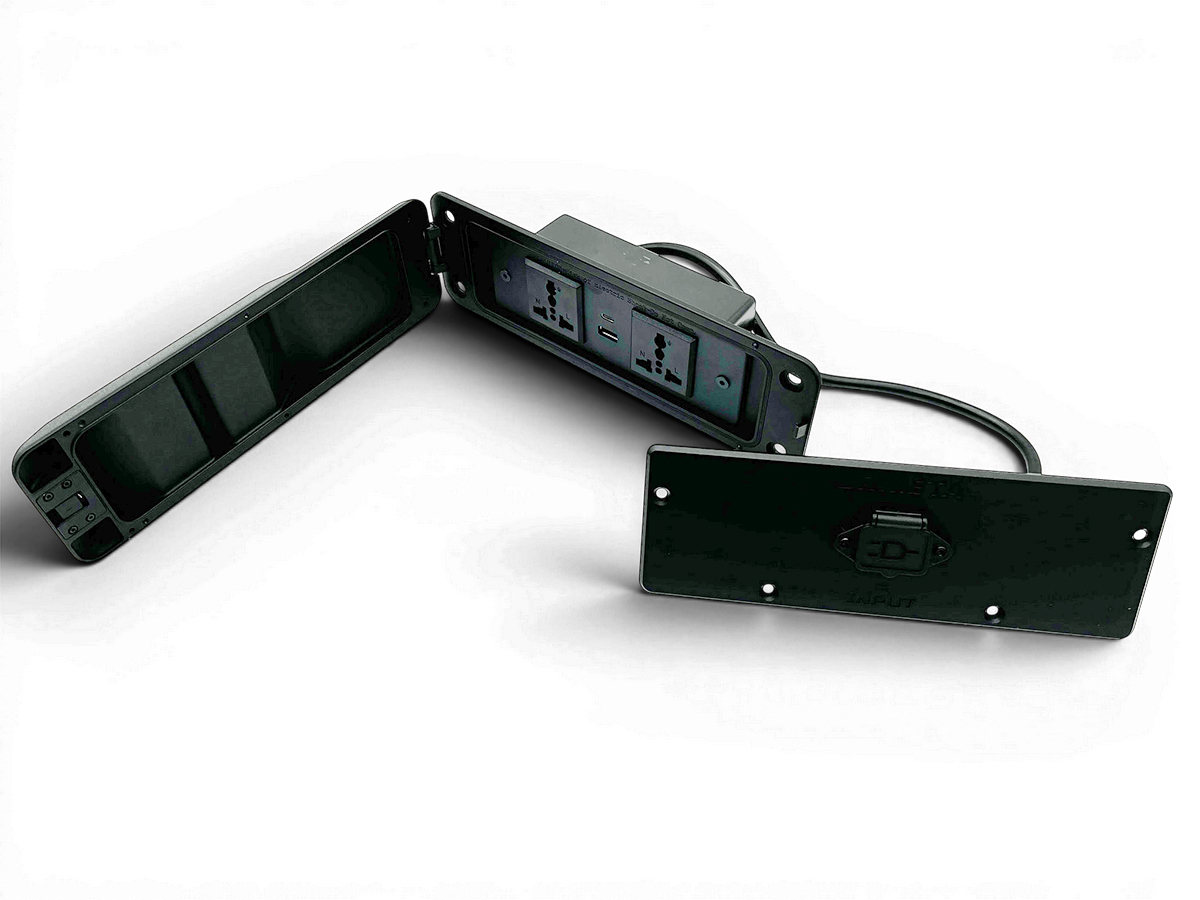 Fabriqué en alliage aluminium-magnésium de qualité aéronautique et usiné en CNC, ce panneau URNIETA associe précision, résistances et finition technique. Il dispose d'un bouton poussoir à ressort pour une ouverture et une fermeture nettes, d'un mécanisme de charnière articulé assurant un mouvement stable, ainsi que d'un joint périphérique intégré destiné à limiter les intrusions d'eau et de poussière. Cette version gauche est conçue pour étendre une alimentation interne 12 V ou USB vers l'extérieur. Elle intègre deux prises internationales, un port USB-A et un port USB-C, pour alimenter ou recharger facilement différents équipements. Un câblage à l'arrière du panneau, une entrée d'alimentation au dos du module, ainsi que plusieurs accessoires de montage sont présents avec le panneau.