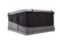La tente de toit EVASION utilise un système assisté par vérins à gaz et bras articulés pour une ouverture facile, protégés par une housse en toile à l'intérieur de la tente.