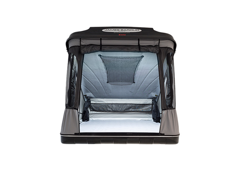 Inspirée par le concept d'ouverture de la Discovery, la tente de toit James Baroud Space a été conçue pour offrir plus de confort aux utilisateurs de grande taille, grâce à un compas frontal de 40 cm pour les pieds ou la tête, augmentant ainsi considérablement l'espace intérieur. Elle intègre tout le confort et les accessoires de la gamme Evolution, ce qui la rend idéale pour tous types de bivouacs et particulièrement attrayante pour les personnes de grande taille.