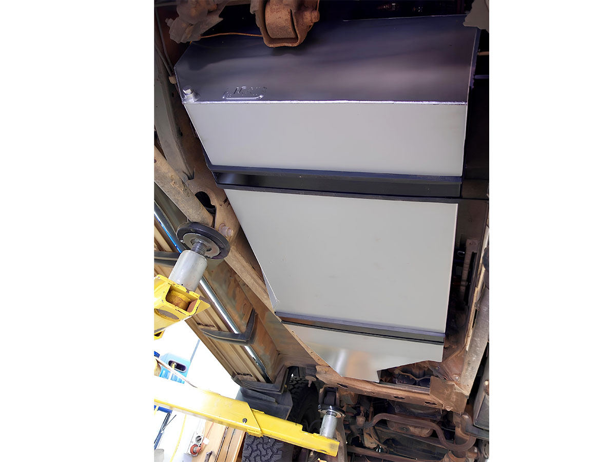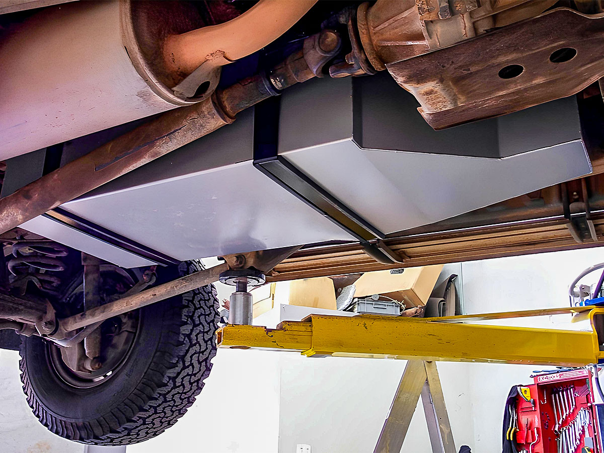 Le réservoir de remplacement haute capacité TLC80FR-DA des australiens LRA est destiné aux Toyota Land Cruiser HDJ80 en boîte automatique équipés d'un réservoir principal, ainsi qu'aux modèles avec double réservoir, dont il remplace le réservoir principal. Sa capacité de 140 litres permet de remplacer le réservoir d'origine d'environ 95 litres par une solution plus endurante, avec environ 45 litres de capacité supplémentaire. Sur les versions à double réservoir, il permet d'augmenter la capacité totale embarquée tout en conservant le réservoir secondaire. Ce réservoir offre ainsi un gain d'autonomie significatif, sans avoir recours à un jerrycan 4x4 ni à un réservoir auxiliaire externe. Il permet également de conserver l'emplacement de la roue de secours, un avantage essentiel pour les utilisations en raid ou en tout-terrain engagé.