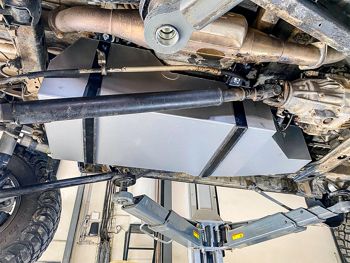 Le réservoir TLC80FR-DM de LRA, fabricant australien reconnu, est un réservoir de remplacement à haute capacité prévu pour les Toyota Land Cruiser HDJ80, dont il remplace alors le réservoir principal. Grâce à sa capacité de 145 litres, il remplace avantageusement le réservoir d'origine d'environ 95 litres, ce qui représente un surcroît de capacité d'environ 50 litres. Sur les modèles à double réservoir d'origine, il augmente la capacité totale embarquée tout en conservant le réservoir secondaire existant. Il en résulte un gain d'autonomie appréciable, sans nécessiter l'emploi d'un jerrycan ni l'ajout d'un réservoir auxiliaire externe. Autre bénéfice important, ce montage laisse intact l'emplacement de la roue de secours, un point particulièrement important dans le cadre d'un usage en raid ou en off-road exigeant.