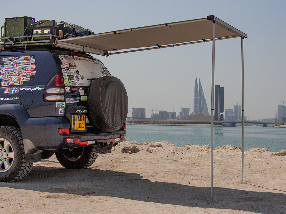 Mesurant 130x240 cm (4,3' x 8'), cet auvent arrière est idéal pour les véhicules plus compacts ou pour ceux qui désirent une solution d'abri plus petite à l'arrière de leur van.