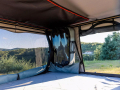 Constituée d'un tissu breveté à triple couche, cette toile innovante garantit une obscurité totale à l'intérieur, permettant un repos optimal à tout moment de la journée. Associée au revêtement Line-X de la coque, elle optimise l'isolation en conservant la chaleur en conditions froides et en maintenant la fraîcheur lors des fortes chaleurs. Sa technologie avancée d'absorption acoustique réduit considérablement les nuisances sonores, créant un environnement intérieur paisible et confortable, même face aux aléas climatiques les plus rudes.