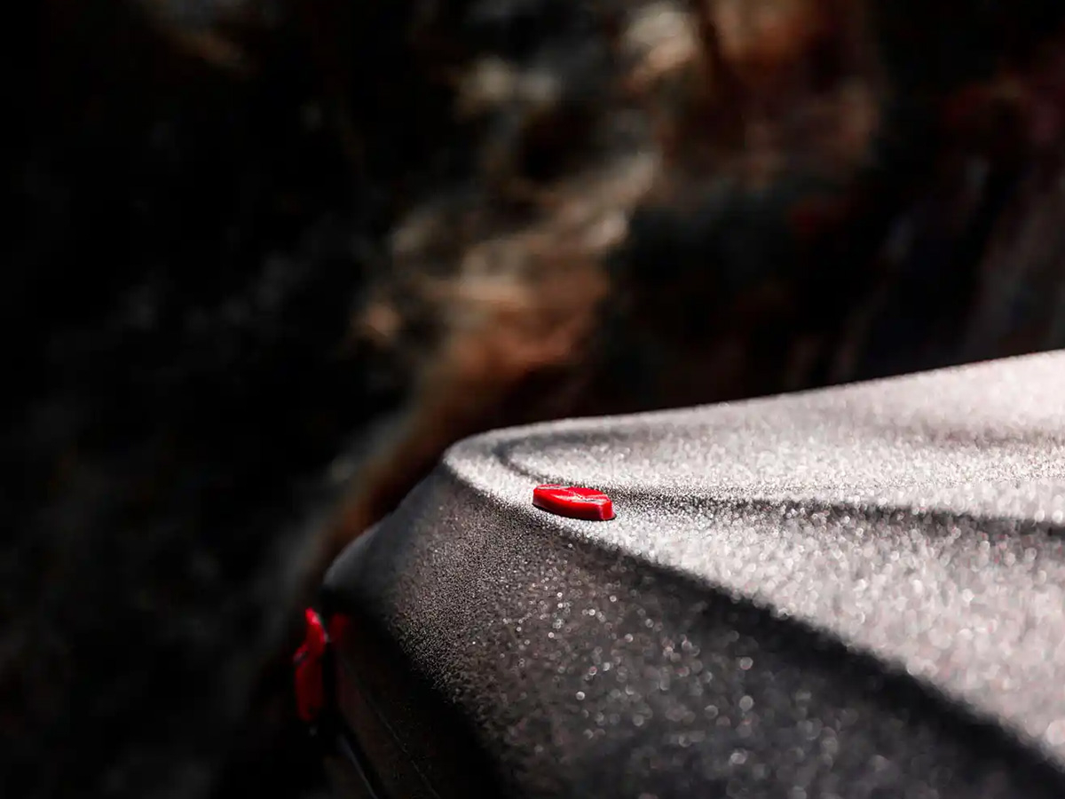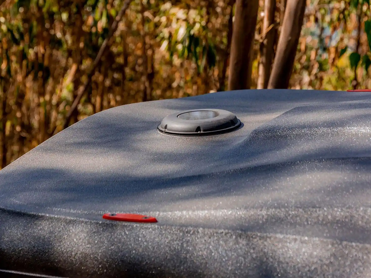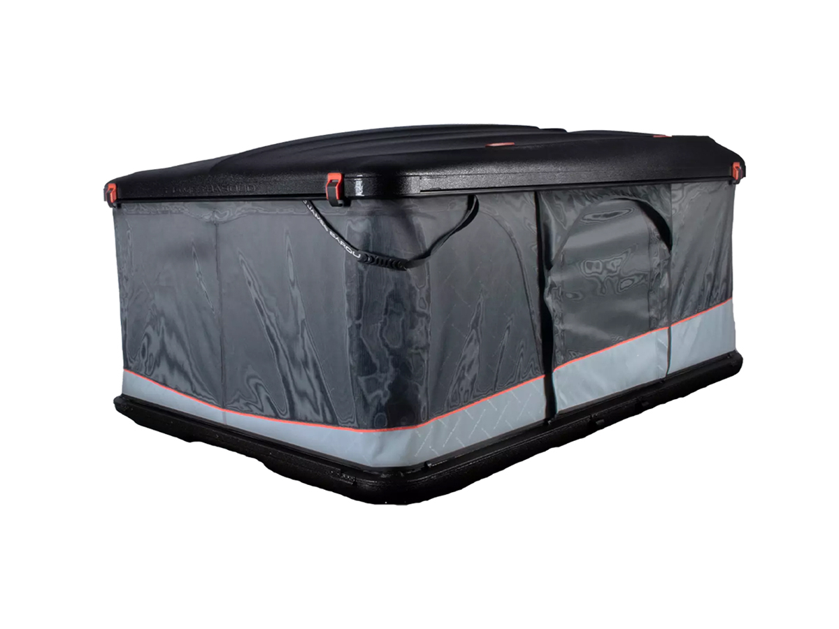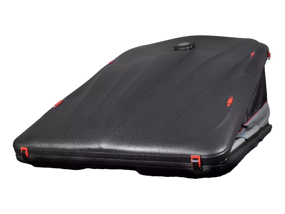 Réalisée en ABS de 4 mm d'épaisseur et protégée par un traitement anti-UV, sa surface est recouverte du revêtement Line-X, reconnu pour sa résistance et sa longévité. Ce procédé lui assure non seulement une excellente résistance aux conditions extérieures, mais également une identité visuelle unique. Les accents rouges qui soulignent certains détails rappellent l'énergie incandescente du magma L, offrant à cette tente une allure distinctive et affirmée.