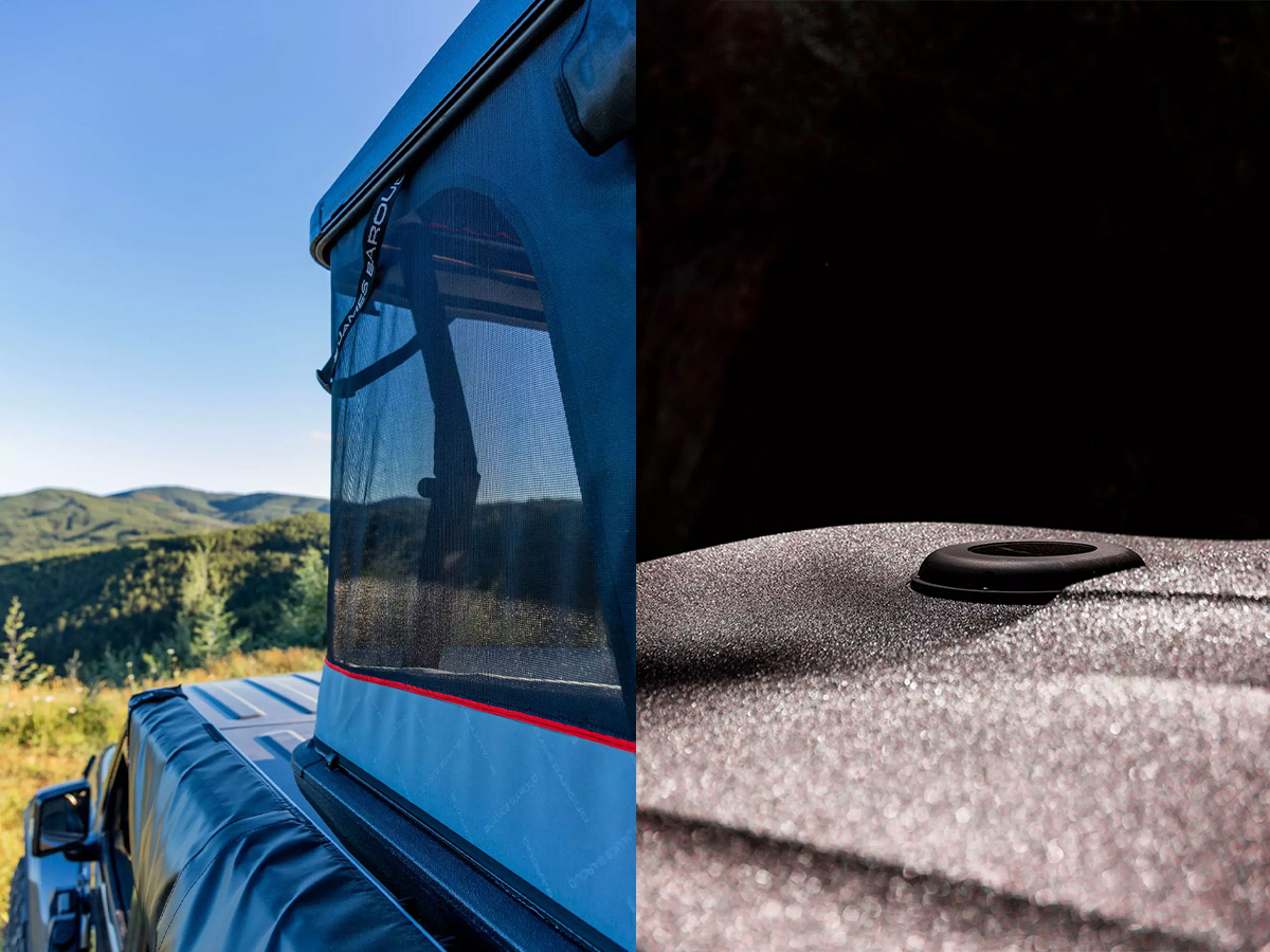 La tente de toit du Magma L de James Baroud intègre une toile haut de gamme spécialement conçue pour offrir une isolation thermique et phonique renforcée.