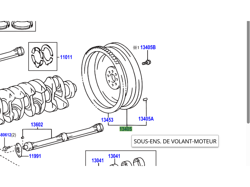 Pièce identifiée par la référence 13405 en surbrillance sur l'éclaté en photo