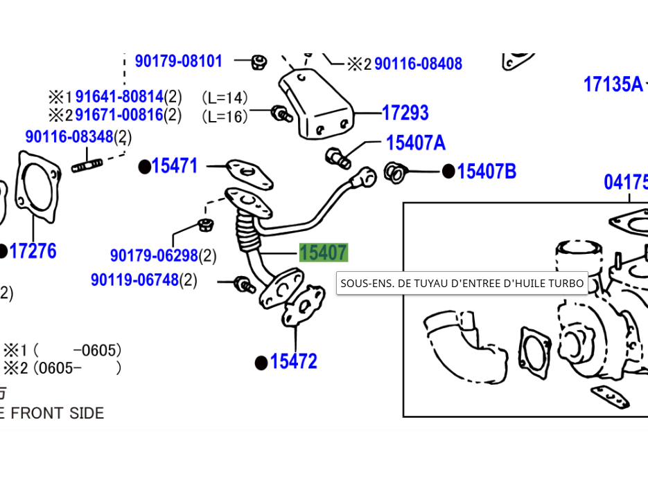 Situé sous le turbo, entre le bloc et le turbo.