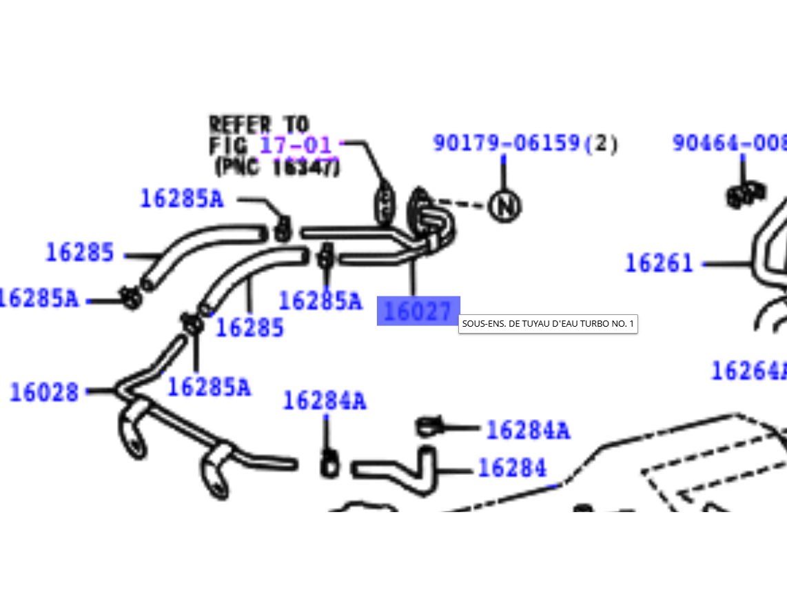 Conduite rigide refroidissement turbo sur turbo HDJ100 08/2002+
